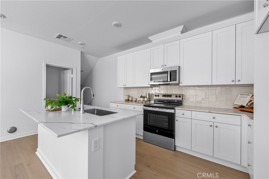Welcome to Valley Villas, a private, gated community offering 58 all-electric, tri-level townhomes designed for modern urban living. Conveniently located just minutes from the 405 freeway, this home provides quick access to everything you need, whether for work or play. This thoughtfully designed townhome features a 2-car garage and a welcoming foyer on the ground level. The second floor is all about open, modern living with 9-foot ceilings, a bright dining room, and sliding doors that lead to a balcony, perfect for enjoying fresh air and natural light. The kitchen is centrally located, making it ideal for both relaxing and entertaining. A powder room on this level adds extra convenience for guests. On the top floor, you’ll find the primary bedroom suite, complete with a walk-in closet. The secondary bedroom also includes en-suite bathroom, offering privacy and comfort. The laundry area is conveniently located on this floor as well, making daily tasks a breeze. Savor the Savings with our Fall Blue Tag event! For a limited time, take advantage of rates as low as 4.8% with our preferred lender Great Western Home Loans. Save hundreds on your monthly payment on move-in ready homes.