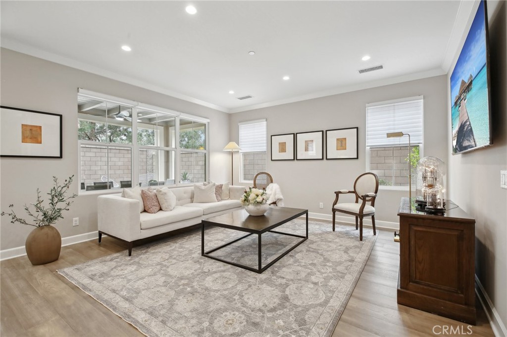 THIS ONE HAS IT ALL — A RARE GEM ON A PEACEFUL, PRIVATE CORNER LOT! Step into this spectacular, turn-key single-family home nestled on a rare corner lot in the highly sought-after community of Eastwood. Boasting four spacious bedrooms, four luxurious bathrooms, and a generous loft, this home perfectly blends elegance, comfort, and functionality. The thoughtfully designed floorplan features a versatile first-floor bedroom or office with an adjacent full bath, ideal for guests or a private workspace. Upstairs, each of the three bedrooms includes its own en-suite bathroom, offering unparalleled privacy and convenience. The light-filled living room seamlessly integrates indoor and outdoor living, creating the perfect space for both entertaining and everyday relaxation. The gourmet kitchen, upgraded by the builder, is a chef’s dream — complete with a large center island topped with Caesarstone quartz, custom tile backsplash, high-end stainless-steel appliances, upgraded cabinetry, elegant flooring, and modern designer paint throughout. Luxurious details continue throughout the home, including rich wood flooring and custom window treatments. The primary suite offers a peaceful retreat with a spacious walk-in closet, dual vanities, a deep soaking tub, and a separate walk-in shower. Step outside to the beautifully landscaped backyard — a private oasis perfect for outdoor gatherings, morning coffee, or evening relaxation. Located in the vibrant community of Eastwood, residents enjoy resort-style amenities, including two pools, a clubhouse, playgrounds, and multiple sports courts. With easy access to Jeffry Trail, top-rated schools, shopping, dining, and major freeways, this home truly has it all. Don’t miss this rare opportunity to own a home that combines luxury, privacy, and location — it’s sure to impress!