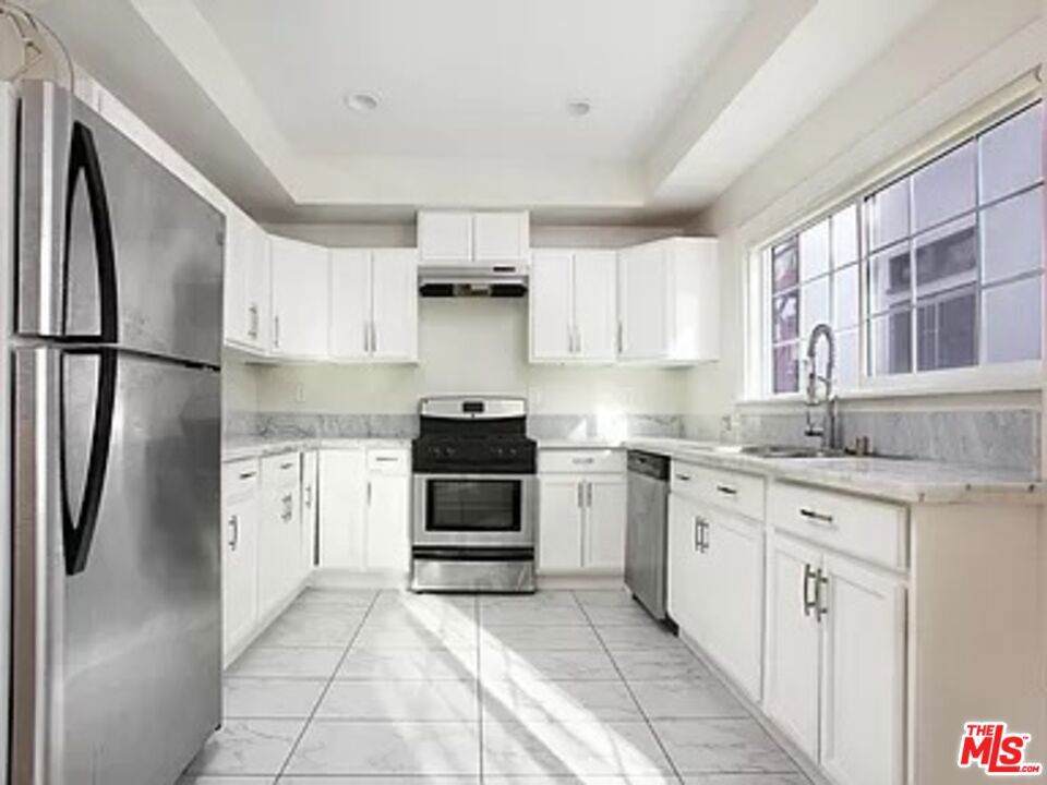LOWER LEFT UNIT -Beautiful, Stylish Apartment in a French Inspired Building in the heart of Prime Los Angeles. Spacious and Remodeled, it has a beautiful kitchen with stainless steel appliances, large living room and bedrooms, laundry room with washer dryer, lovely bathrooms both with showers and no tub and have marble counters, walk in closets, new flooring and the list goes on. This apartment is sun filled and also has a front porch to enjoy coffee or just get your morning fill of sunlight. Includes 1 car garage (depends on size of car) and 1 parking spot. Pets are accepted and case by case. Property does not supply central AC and for heating it has a floor heater vent in the hallway. Available for move in July 1. Great credit and references are a must. Renters insurance required. Landlord pays trash and gardener, tenant pays all other utilities. PLEASE CHECK LISTING AS VIDEO TOUR WAS JUST ADDED.