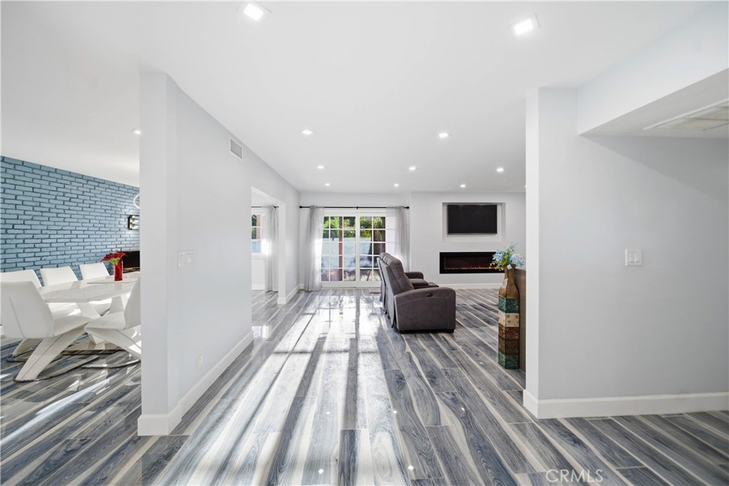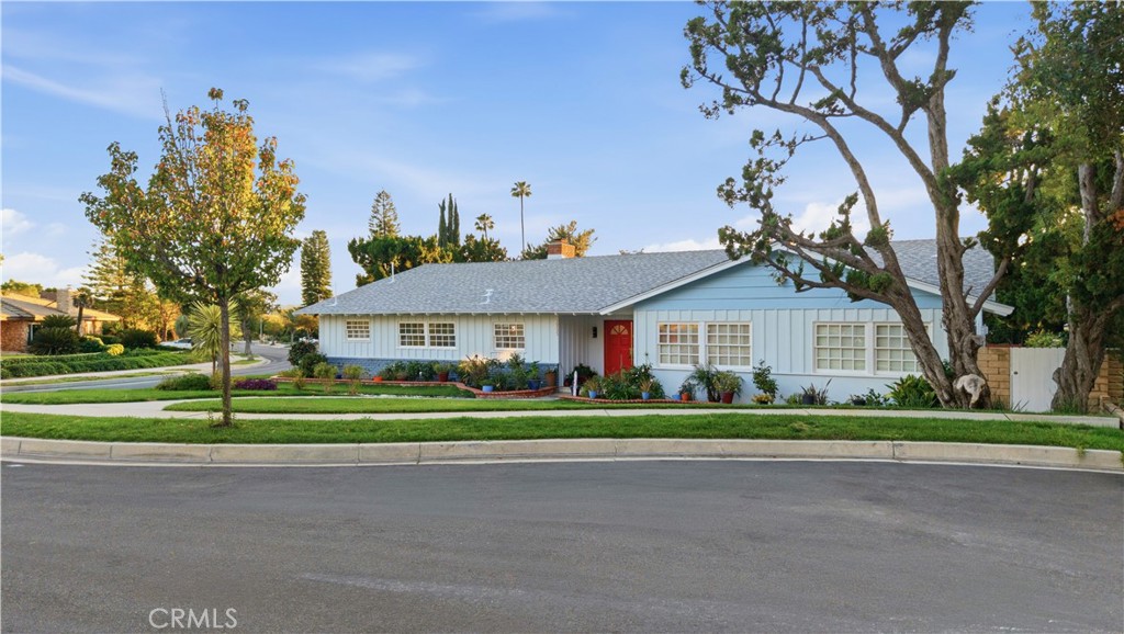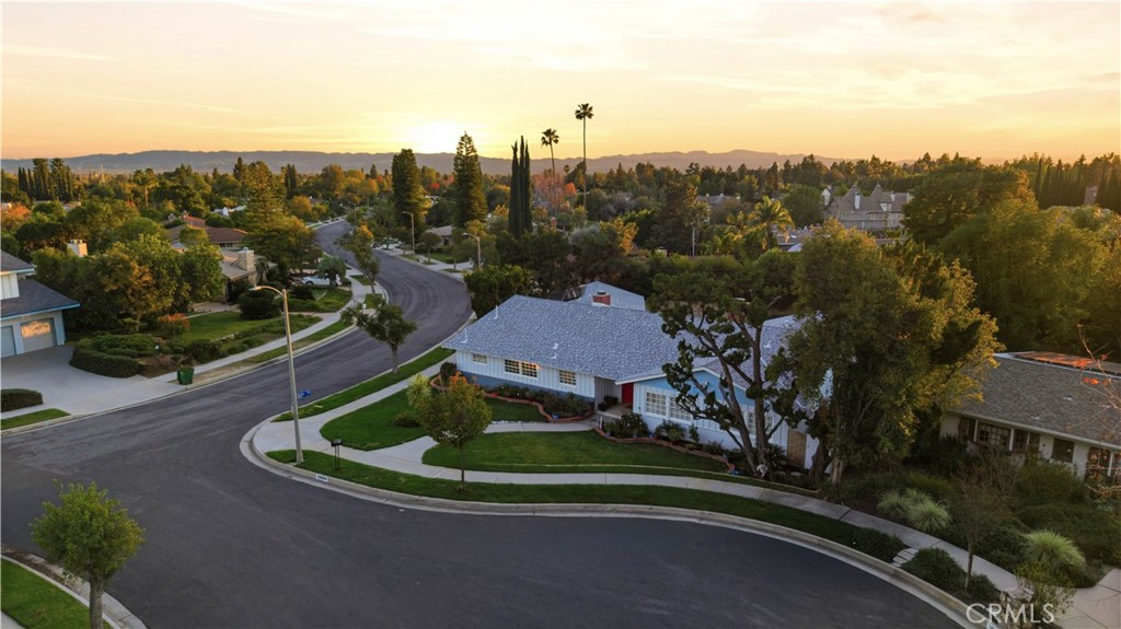 Brand new roof, solar panels in place, ADU potential, and a prime location that continues to be a favorite among Northridge buyers. Sprawling single story living in the desirable Scottish Terrace Estates. Nearly 2,800 square feet, all on one level, with elegant porcelain wood-look tile flooring throughout. Step inside to a wide open floor plan designed for both everyday living and entertaining. The gourmet kitchen is positioned at the front of the home and serves as a true focal point. This chef-inspired kitchen is thoughtfully appointed with a high-end ZLINE appliance package, featuring a stainless steel 7-burner double-oven range with statement hood, ZLINE dishwasher, stainless steel farmhouse sink, trash compactor, pot filler, built-in luxury refrigerator, and wine cooler. White cabinetry is elevated with bold red hardware accents, complemented by quartz countertops and a modern gray-toned tile backsplash. The open concept layout flows seamlessly from the kitchen into the family room, formal living room, and dining area. Designed for an indoor-outdoor lifestyle, sliding doors from the main living spaces open to a private backyard retreat featuring a pool and spa, lush greenery, usable lawn, and a massive covered patio with vaulted ceilings. The home offers four bedrooms and three bathrooms. The bath is a standout, featuring a massive glass enclosed wet room with a freestanding soaking tub set against a floor to ceiling tile wall. High-end finishes include sleek matte black hardware and LED backlit mirrors over dual vanities. Situated on a corner lot, this true single story ranch offers a wrap-around lawn, wide concrete driveway, and detached two car garage enhancing both privacy and ADU potential. The home also features a convenient indoor laundry room with washer and dryer hookups and a utility sink for added functionality. A rare opportunity offering space, flexibility, and timeless single level living, ready for its next owner.