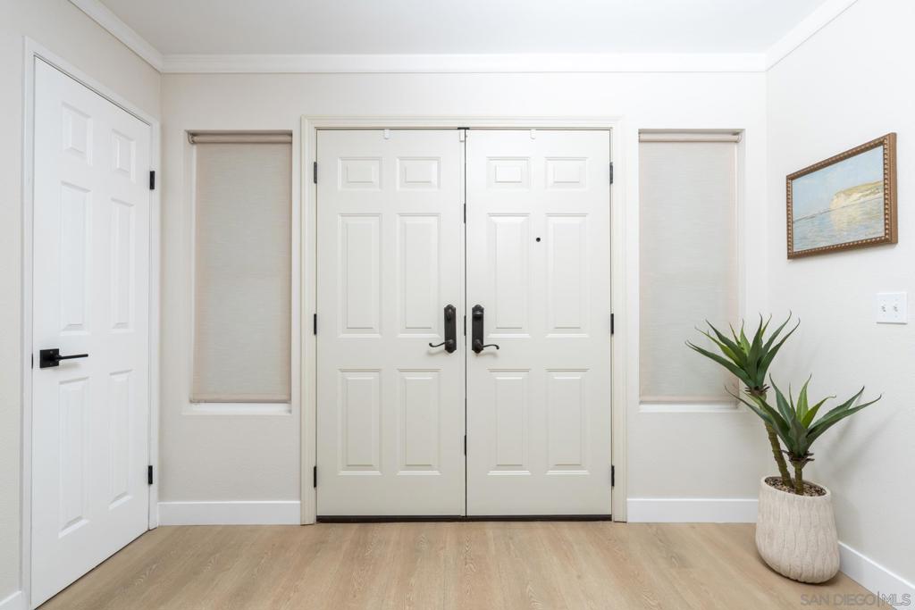 Wonderful opportunity to own a beautifully upgraded, 3 bedroom/2 bath, single-level home in a quiet and friendly neighborhood. Pride of ownership is evident throughout this well-maintained property featuring quality upgrades and thoughtful improvements. The home offers fully paid solar panels and an electric vehicle charger. Enjoy beautiful mountain views and stunning sunset skies. Ideally located just minutes from great schools, Santee Lakes, restaurants, shopping centers, and convenient freeway access, this home offers both tranquility and everyday convenience. Beautifully upgraded single-level 3-bedroom, 2-bath home located in a quiet and friendly neighborhood. Built in 1984 and meticulously maintained, this home offers mountain views and stunning sunsets from the backyard, creating a peaceful and welcoming setting. The fully renovated kitchen features solid wood cabinetry, granite countertops, soft-close drawers and doors, pull-out storage systems, and modern Samsung appliances, including a brand-new dishwasher and a high-end water filtration system. The interior is enhanced by premium waterproof vinyl flooring throughout, while both bathrooms showcase natural marble and solid wood vanities, reflecting quality craftsmanship and thoughtful design. Designed for efficiency and modern living, the home includes a fully paid high-capacity solar system that typically keeps summer electricity bills low while also supporting electric vehicle charging. An EV charger is already installed in the garage, making the home ready for Tesla and other electric vehicles. Comfort is ensured with a high-end HVAC system replaced just five years ago, featuring a fresh-air intake system, as well as an automatic garage roof ventilation fan that helps remove hot air. The backyard is shaded by a large mature tree, and a leveled concrete patio area with a premium 12-foot umbrella provides an ideal space for relaxing or entertaining outdoors. Extensive upgrades include newer windows and doors throughout. Security and peace of mind come with an ADT alarm system and Blink security cameras installed both inside the home and around the perimeter. The location is exceptional, just a few minute walk to highly rated schools and Santee Lakes Park while shopping centers and many restaurants are all within a short drive, with easy access to major highways. This move-in-ready home combines modern upgrades, energy efficiency, comfort, and an outstanding location in one of Santee’s most desirable neighborhoods.