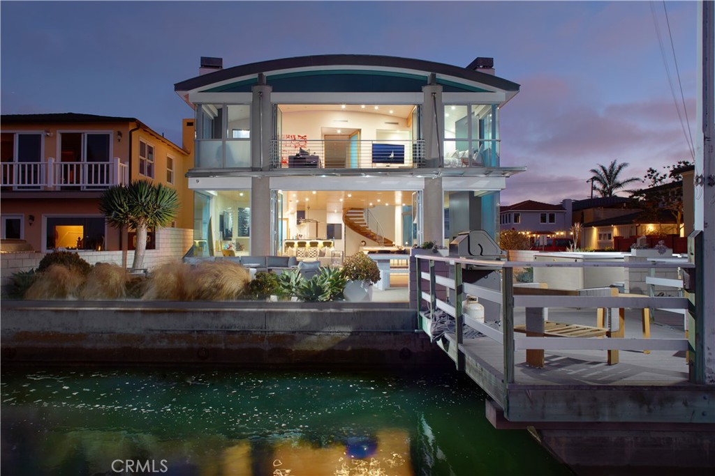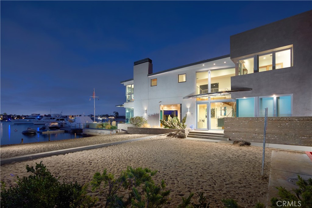 Harborfront contemporary retreat with private dock, offered fully furnished or unfurnished and featuring a gym with infrared sauna, jacuzzi, and the option of a 43’ boat with captain. Set on a coveted corner lot on Balboa Peninsula, this bayfront home captures sweeping views of the turning basin, city lights, and harbor activity. Expansive sliding glass doors open to a large waterfront deck, creating seamless indoor-outdoor living. Approximately 4,256 square feet, the residence offers a spacious great room flowing into a chef’s kitchen with oversized island, marble countertops, and English Sycamore cabinetry. The main level includes a guest suite with en-suite bath, powder room, and an attached three-car garage. The upper level is anchored by a full-width primary suite with stunning water views, fireplace, built-in workspace, and a limestone bath with soaking tub. Four additional bedrooms, two baths, and a flexible loft complete the home. Custom finishes include maple ceilings, mahogany floors, Venetian plaster, limestone, stainless steel railings, Brazilian Blue granite, and a zinc roof. Just beyond the patio, a private pier and dock can accommodate a vessel over 50’, providing immediate access to the harbor. Ideally located moments from Balboa’s shops, dining, and beaches, this home delivers elevated coastal living at its finest.