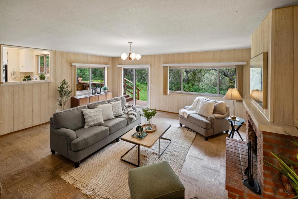 Discover the serene elegance of this single-level, 4-bedroom, 3-bathroom residence nestled on a tranquil street in the highly sought-after neighborhood of Pebble Beach. Perfectly positioned on the greenbelt, near the 7th hole of the iconic Spyglass Golf Links, this home offers not only privacy but also proximity to stunning beaches, scenic trails, and is within the prestigious Pacific Grove school district. Step inside and find an expansive family room, showcasing a charming brick fireplace, a dining area, and a mid-century style living room with a cozy gas log fireplace. The seamless flow into the kitchen, which features an eat-in dining area and access to the backyard deck area, makes it ideal for both comfortable family living and entertaining. Additional amenities include a full-house generator, dual paned vinyl windows, newer roof, recently painted exterior, low-maintenance landscaping, a two-car attached garage, indoor laundry and a stylish paver driveway. Lovingly maintained by the same family for nearly 60 years, this home is ready to create new memories.