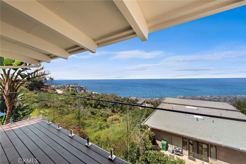 Enjoy spectacular ocean and coastline views from this turnkey home! Everything is pristine – all new wood floors in entry, kitchen, living room and dining room. All new carpet in all other living areas. Working fireplace in the living room which opens to ocean view terrace with walls of glass. New dishwasher and new range in the gourmet kitchen. Spacious bedrooms with plenty of storage. Master bedroom and lowest level rooms open out onto ocean view decks. Two bedrooms and two baths are located on middle level – separate room on third level down with one small bedroom, one bath, small living room and kitchenette. All new full size washer and dryer provided in the indoor laundry area located in bathroom on middle level. Three off-street parking spots in driveway and carport. Close to park, pickle ball and hiking trails. Just minutes to beach and downtown Laguna Beach. Metal railings are being installed at driveway and on along walkway.