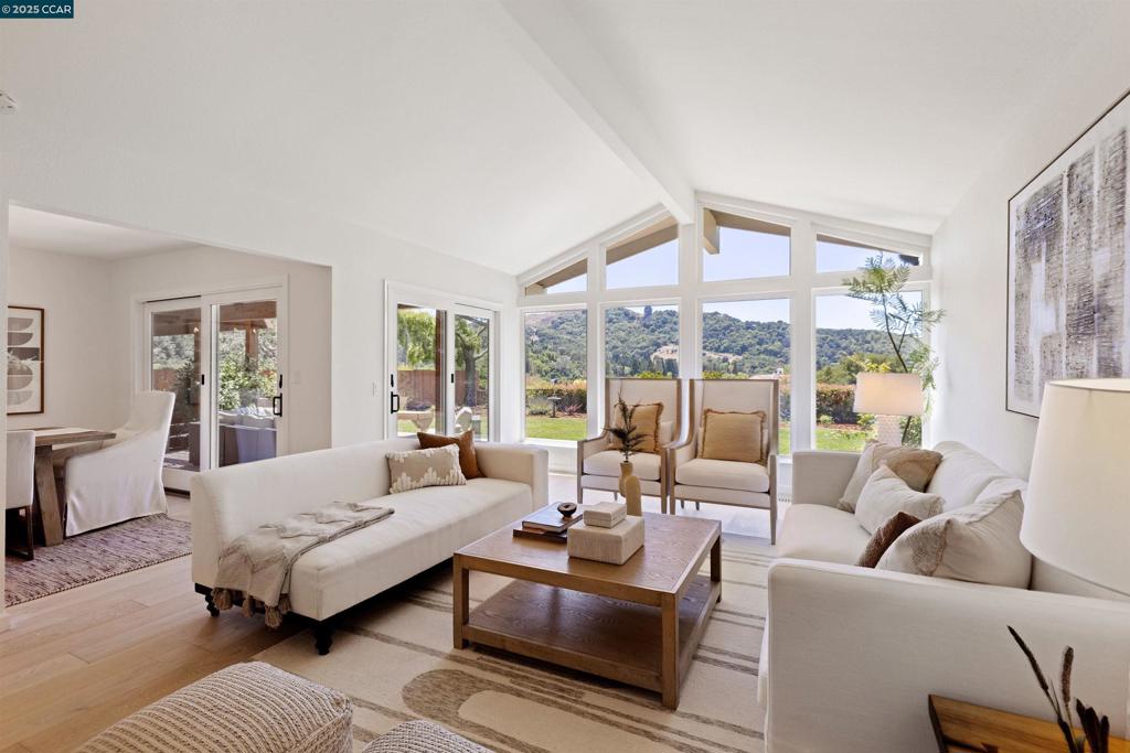 Beautiful single-level home on a fabulous third- acre offering a welcoming place to call home w/ a dramatic view of the picturesque chapel bell tower on the St.Mary’s College against a backdrop of Moraga’s Hills. Located in prestigious Bluff’s neighborhood w/ privacy & a peaceful setting. Andersen sliding French doors open to an amazing, ultra-private outdoor sanctuary where you can enjoy the incredible views from the spacious brick patio w/ built-in bench seating under the pergola, on the trex deck, or relish the picturesque gardens. There is plenty of room to entertain on every scale, play & relax. Behind the front garden, an inviting porch & double door entry is an open, light-filled floorplan. A wall of windows echoes the pitch of the vaulted ceiling in the formal living room featuring fireplace & hardwood floors. The bright kitchen enhanced w/ recess lighting, tile counters, plus a large breakfast room w/ built-in cabinetry & adjacent to a mud room & powder room. “Enjoy the view from the window over the sink” plus the wonderful great room for quiet evening, family fun or larger entertaining. A rare combination of amazing yard, beautiful house, top schools & desirable Bluff’s location!