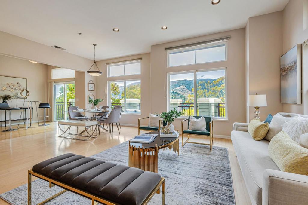 This spacious 3-bedroom, 2.5-bathroom home spans 2,273 sq. ft. of elegant living space with refined finishes. Expansive windows and abundant recessed lighting create a bright and inviting atmosphere day and night. Enjoy serene bay views from two private balconies, all set within a quiet neighborhood that offers peace and privacy. Community amenities include a fitness center, hot tub, tennis court, and scenic walking trails. Located in the quaint town of Brisbane, just 15 minutes from downtown San Francisco with easy access to Highways 101 and 280, this home combines luxury living, small-town charm, stunning views, and an easy commute.
