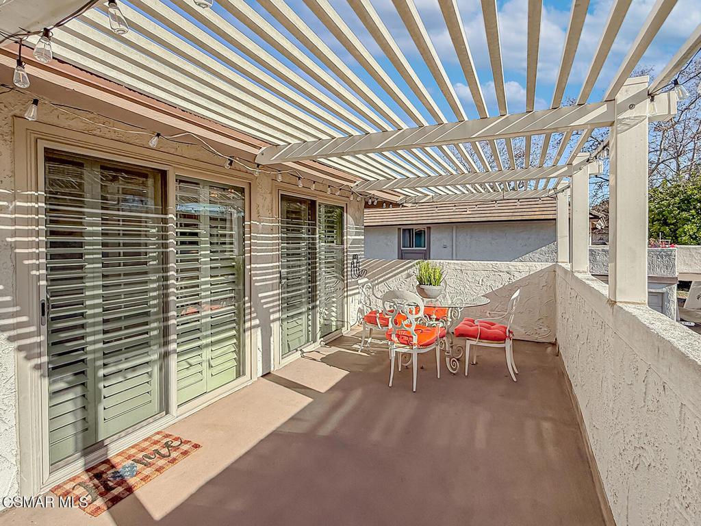 Tastefully Updated LIGHT & BRIGHT Condo in a Prime Westlake Village Location! Set within the ever-popular Village Green community, this thoughtfully updated 2-bedroom, 1-bath condo delivers a relaxed, low-maintenance lifestyle in one of Westlake Village’s most coveted locations. With Westlake Commons just around the corner, everyday conveniences and weekend indulgences are all within easy reach–renowned restaurants, boutique shopping, a neighborhood winery, and miles of scenic trails for walking and biking are practically at your doorstep!Inside the home you are greeted by upgraded STONE flooring at the Entry which precedes the open Living Room which boasts UPGRADED wood-like flooring that continues into the Dining Room and both bedrooms. The roomy Dining Room is SUPER BRIGHT from a WALL of DUAL-paned windows with plantation shutters and flanks the galley Kitchen which has been tastefully updated with STONE-tile countertops & backsplashes, a double-sink overlooking the Living Room, a 4-burner gas range beneath a stainless-steel Whirlpool microwave, and a tucked away IN-UNIT stackable washer/dryer! Both bedrooms are spacious, with one offering a WALK-IN closet with BUILT-IN organizers and the other providing a closet with sliding mirrored wardrobe doors. The bathroom provides a tile-walled tub shower and built-in vanity, neighboring PLENTY of closet storage space in the hallway.A standout feature of the home is the oversized private patio, positioned to take in peaceful views–an inviting outdoor extension ideal for relaxing evenings or quiet mornings. Parking is effortless with a private garage + a reserved parking space, and guest parking throughout the community. You will love your BRAND-NEW HVAC units (July 2025) and the resort-like environment which showcases TWO heated pools + spa, basketball and shuffleboard courts, and beautifully landscaped grounds that feel more like a neighborhood park than a condo complex. The HOA includes water, trash service, and interior and exterior pest control, simplifying ownership and enhancing ease of living! Comfortable, convenient, and exceptionally located, this home offers a rare chance to enjoy the best of Westlake Village–where nature, recreation, and everyday essentials come together just minutes from home!
