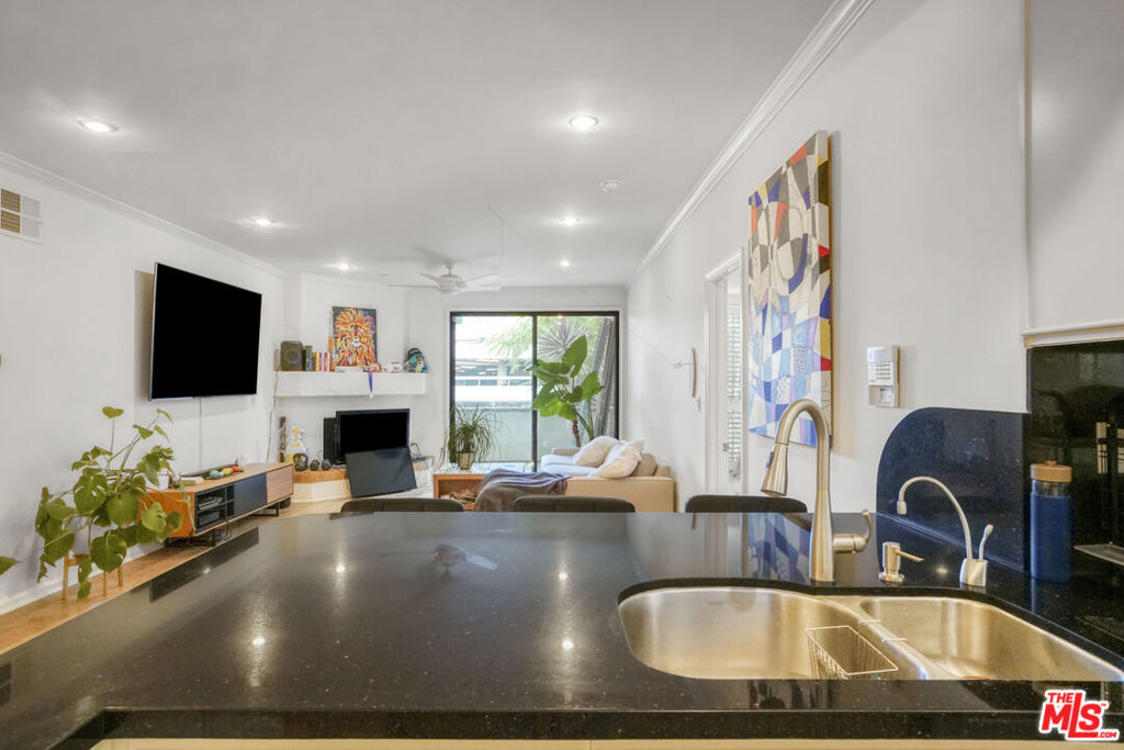 BRENTWOOD FURNISHED CONDO in an impressive condo building on the prestigious Montana Avenue. Front facing unit, extremely bright and with open floor plan and split bedrooms each with its own private bath. Beautiful gourmet kitchen with black granite breakfast bar with bar stools facing the livingroom, perfect for that morning coffee. The unit is extremely charming and chic with rich wood floors and a large balcony. The master bedroom is over sized and has a big screen TV, lots of light and a wonderful master bath and large closet space.. There are two tandem parking spaces, a storage space and a security gated garage and fabulous guest parking