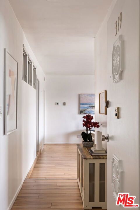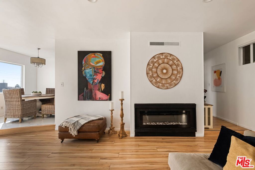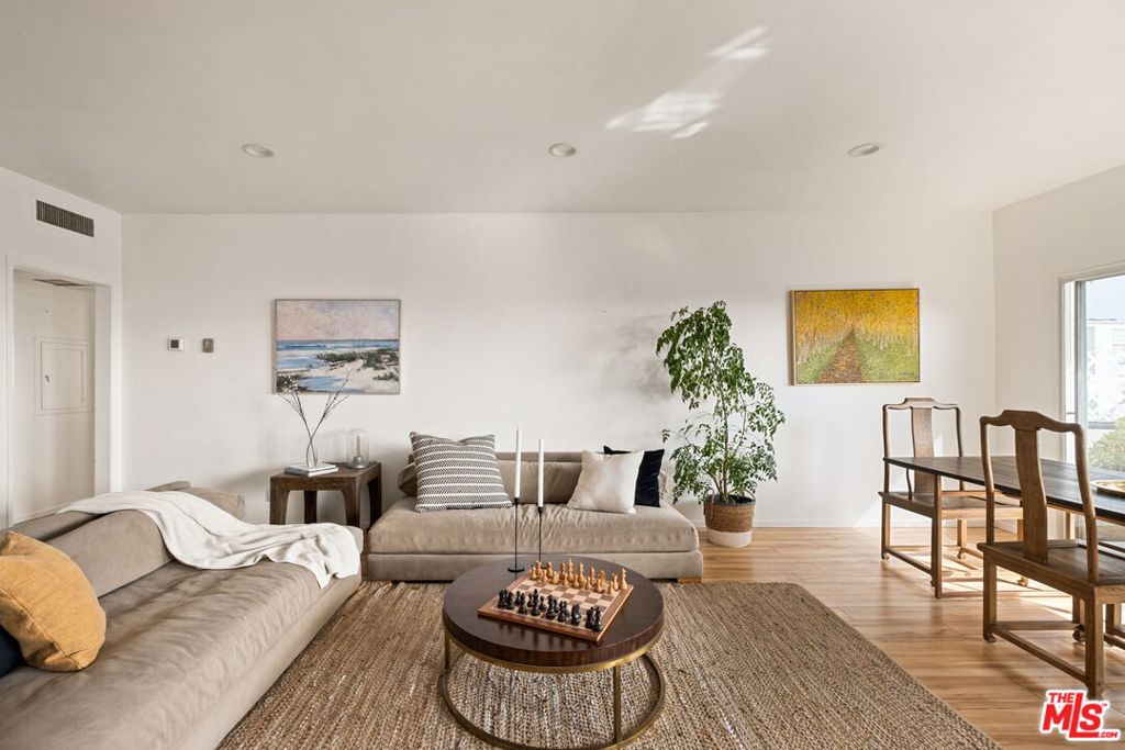 Welcome to this bright and airy top-floor condo nestled in the heart of Brentwood, one of LA’s most sought after neighborhoods. With unobstructed views, this three bedroom, two bathroom single-level home offers a layout that provides optimal privacy and an abundance of natural sunlight. As you enter the newly renovated home, you’ll find updated flooring throughout the living spaces and bedrooms. The spacious living area features recessed lighting as well as a sleek, electric fireplace, creating a cozy and inviting ambiance. Natural light pours in from the private balcony, where a charming flower lattice frames the quiet space that looks out to the Westside skyline. The lovingly renovated kitchen boasts new tile floors, pristine white wood cabinetry, quartz countertops, and upgraded stainless steel appliances. An elegant ceramic tile backsplash complements the cabinetry, while the custom built-in shelving provides an artistic way to display your collection of cookbooks, plants, and kitchenware. Connecting the kitchen and living room are two dining areas – a formal space for dinners or entertaining, and an intimate dining nook for more casual meals. Off the living space, a tranquil bedroom with two closets provides the perfect setting for a guest room, playroom, or home office. Located between the secondary bedrooms and living space, you’ll find a full bathroom that features tile flooring, new countertops, crisp white walls, and polished bath tiles. Just down the hallway you’ll discover two more bedrooms, including the primary suite, complete with a private vanity area with floating glass shelves, wall-to-wall mirrored closets, electric blinds, and an ensuite bathroom that offers the indulgence of both a bathtub and a dedicated shower. With an emphasis on comfort and convenience, this condo includes an in-unit laundry room featuring a side-by-side washer and dryer, and central heating and air-conditioning. Building amenities include additional laundry machines, two side-by-side parking spaces, private storage space, a sparkling pool, and a spacious sundeck to enjoy sunny, California living. The proximity to the weekly Brentwood Farmers market, as well as the shops and restaurants along San Vicente and Wilshire Blvd, add to the appeal of this move-in ready condo!