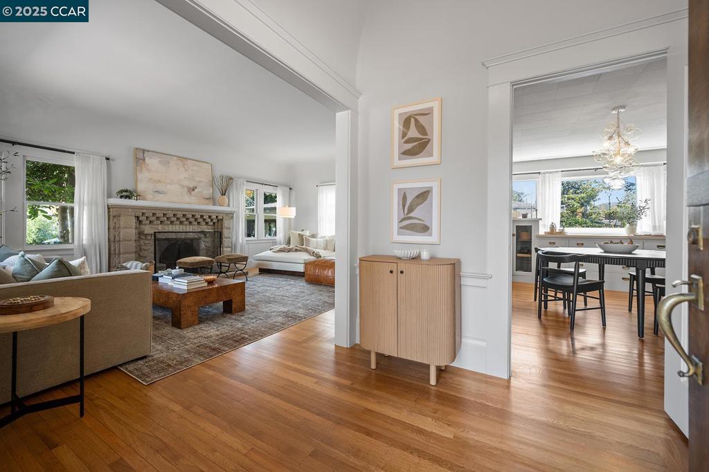 Nestled on the edge of North Berkeley, this delightful home built in 1916 captures the timeless charm of the era while offering modern comforts. Flooded with natural light, the spacious floor plan showcases gleaming original hardwood floors, recently refinished to highlight their warmth and character. The updated kitchen is a chef’s delight, featuring custom cabinetry, sleek quartz countertops, and a striking copper backsplash that adds a touch of artistry to the space. A formal dining room, anchored by a rustic fireplace and accented with the original built-ins and a bubble glass chandelier, creating the perfect atmosphere for both intimate dinners and lively gatherings. Three generously sized bedrooms provide comfort and flexibility, while the adorable laundry room, complete with sink and ample storage, adds convenience to daily living. Every corner of this sweet vintage home radiates charm, seamlessly blending vintage details with tasteful updates. Private studio or office with kitchenette and bathroom and its own entry off the back of the house, ideal for work or living with convenience and privacy. Home is perfectly situated in a highly walkable neighborhood, you’ll enjoy easy access to beloved Berkeley favorites, from cozy cafés to local shops.