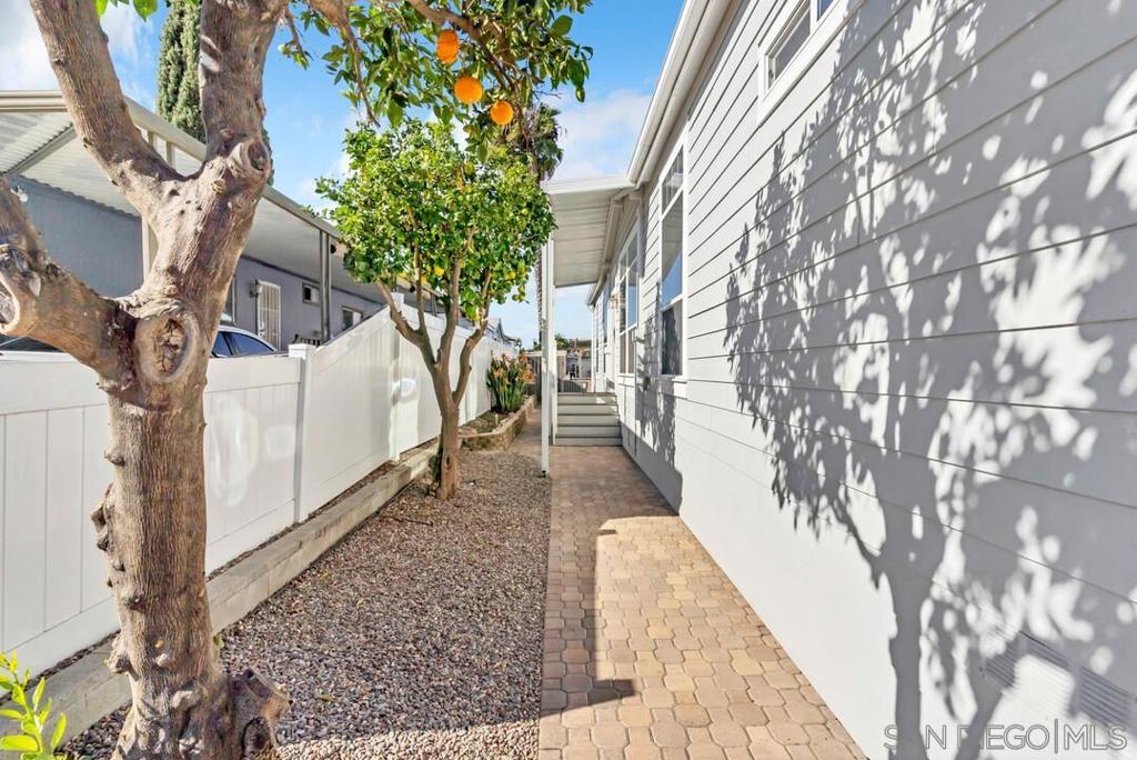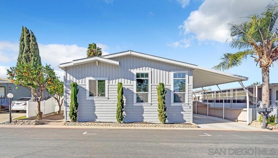 This MUST-SEE 2019 Custom-built manufactured home is located in the “All-Ages” community of Poway Royal Estates. With 1,748sq.ft., this open-concept home features 3 bedrooms + an Office & 3 full baths. As you enter the home, you will find the great room with high ceilings, an abundance of windows & fantastic flow between the living room, dining area & kitchen; which boasts an expansive island w/room for four barstools, under-counter storage & a prep sink. Stainless steel appliances include a six-burner cooktop, dishwasher & large side-by-side refrigerator; Cabinets offer ample storage w/soft-close doors/drawers & quartz counters. The convenient Laundry/Utility Room has a walk-in pantry, side-by-side washer/dryer, extra upright freezer (also converts to a fridge) and direct access to the carport that fits 2-3 cars. See Supplement for added features. Beautiful Crown molding, 5 ½” baseboards & Luxury Vinyl Plank flooring throughout; dual pane windows w/added solar film protection, Central HVAC & Ceiling fans (in all but two rooms), space-saving pocket doors, Recessed Lighting, 3 Solar tubes for added natural light, Tankless Water Heater, Utility Sink in Laundry Room. Exterior of the home features Hardy Plank Lap Siding, Front & Back Porch/Steps are composite, Asphalt Shingle Roof, Landscaping has drip irrigation system for planter box and both fruit trees (Naval Orange & Lemon); hardscape was done w/hand-laid pavers. And, don’t miss the large custom-built outdoor shed/workshop w/built-in bench and loft space for even more storage. Enjoy community amenities such as two pools, a jacuzzi, sauna, fully-equipped fitness center, tennis courts, BBQ area, clubhouse, game room, AND covered RV/boat parking. Conveniently located near shopping, restaurants, cinema, library & parks. All THIS, Plus, located within the highly acclaimed Poway School District, providing access to top-rated schools.