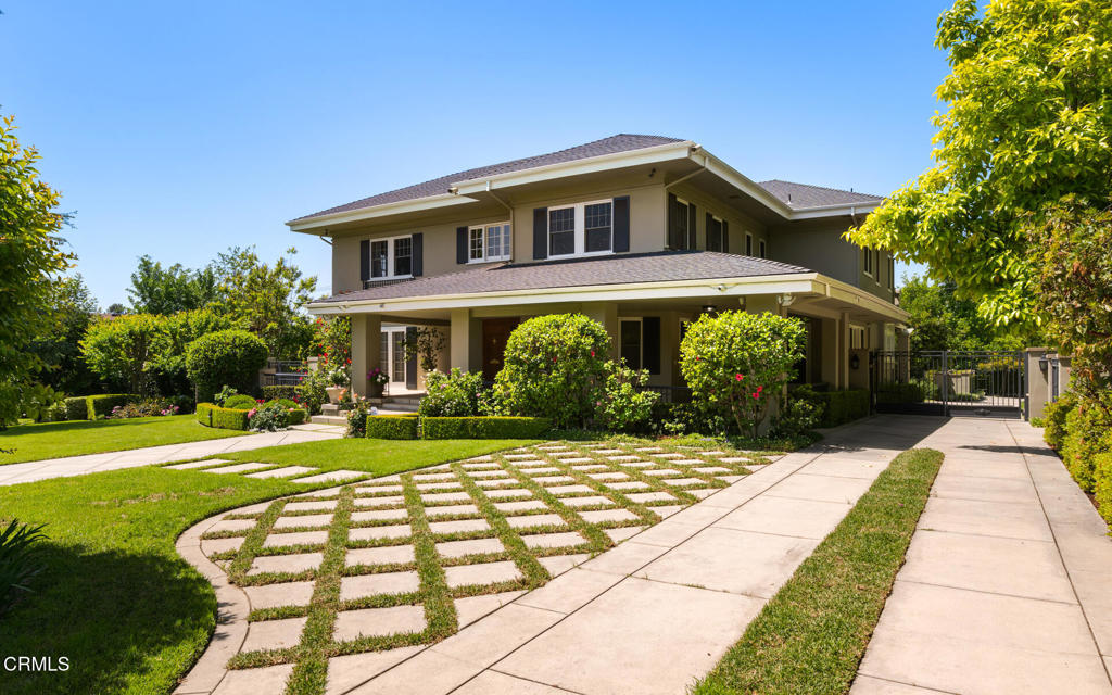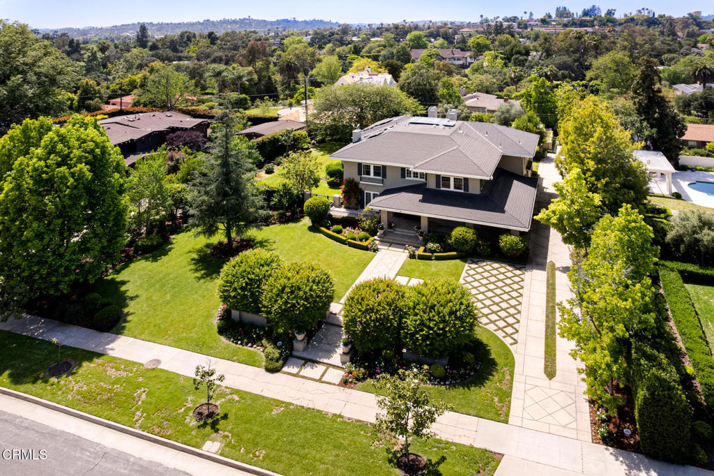 Situated on one of the most prestigious and coveted streets in Pasadena, this classic 1916 two-story estate blends timeless elegance with understated luxury and refined comfort. Set on a sprawling 32,794-square-foot lot, the residence is enveloped by lush greenery and mature landscaping, offering a serene sanctuary that perfectly balances grand scale with an intimate, harmonious atmosphere.An inviting foyer opens to the elegant living room, which is anchored by a magnificent statement fireplace. The graceful formal dining room, designed for sophisticated entertaining, is complemented by a professional butler’s pantry. The beautifully appointed chef’s kitchen features a substantial center island, high-end built-in appliances, abundant cabinetry, and a walk-in pantry. A charming breakfast nook flows seamlessly into the family room, complete with a built-in entertainment center and a picturesque bay window featuring a seated storage bench. French doors lead to a wrap-around patio, creating a seamless transition to the backyard for a true indoor-outdoor lifestyle. The main level is completed by a versatile den/office and a guest powder room.On the upper level, four en-suite bedrooms, an office, and a laundry room are centered around a landing illuminated by a stunning leaded-glass skylight. The primary suite is a true retreat, featuring a romantic fireplace, dual custom walk-in closets, and a spa-like primary bath with a steam shower, marble-topped dual sinks, and a jetted soaking tub. Private doors open to a secluded balcony overlooking the tranquil grounds. Three additional spacious en-suite bedrooms, each with updated baths and walk-in closets, provide comfort and privacy for family and guests alike.The exterior is an entertainer’s dream, boasting expansive grounds with flowering gardens, a greenery trellis, and a sparkling pool and spa. Multiple seating areas, a fountain, and an outdoor fireplace offer an ideal setting for large-scale gatherings or quiet evenings under the stars. Additional features include hardwood floors, custom drapes and window coverings, a 4-zone HVAC system, a security alarm and video surveillance system, Sonos sound, and a gated driveway leading to a 3-car garage with EV charging and a fully paid-off solar system.Just moments from Old Town Pasadena and the South Lake Avenue District, this estate offers a rare opportunity to experience sophisticated living at its very best.