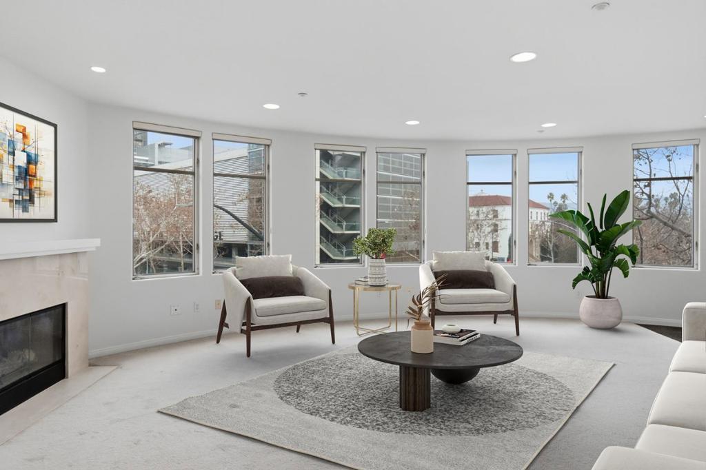 Fantastic corner unit condo located in the heart of Downtown San Jose. This home boasts a spacious 1,752 square feet of living space with plenty of space in the large living room area. Large windows span the length of the living room and provides plenty of natural sunlight along with views of the foothills. Galley kitchen with lots of cabinetry and counter space. There is space in the living room for a formal dining table plus a smaller dining table in the eat-in area just off the kitchen. Or you can use this space for a home office or study. The primary bedroom is oversized and includes a large walk-in closet. En suite primary bathroom with a stall shower, bathtub and dual vanity. This corner unit has windows on two sides that allow for a nice cross breeze and fresh air. Property includes 2 parking stalls in the secured parking garage and a bonus storage unit that is perfect for storing a bike, golf clubs, snowboard, holiday decorations, or your extras from that Costco run. Great location in downtown located steps from San Jose State, restaurants, theaters, coffee shops and more.