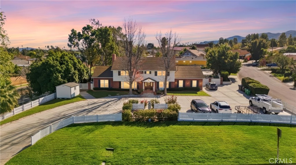 Welcome to 1301 Paseo Grande in Corona, a well-appointed home designed for everyday comfort and easy entertaining. The property offers multiple spacious living areas with abundant natural light, including a formal living room with fireplace and coffered ceilings, and a separate family room with exposed beams, a second fireplace, and sliding doors that open to the backyard. A dedicated office or den with custom built-ins provides flexibility and may be used as a fifth bedroom, complete with a private full bathroom and separate exterior access. Upstairs features four bedrooms, including two primary-style suites for flexible living arrangements. The main primary suite offers plantation shutters, space for a sitting area, a walk-in closet with built-ins, and an ensuite bath with soaking tub and glass-enclosed shower. A separate laundry and utility room with extensive cabinetry adds convenience. The updated kitchen includes white cabinetry, stone countertops, a waterfall-edge island, and a professional-style range with hood and full-height backsplash, opening to the dining area for everyday living and gatherings. The low-maintenance backyard is designed for water-efficient living with extensive concrete hardscape, a covered patio with ceiling fans, an in-ground pool, and an elevated gazebo or pavilion area suitable for gatherings. Additional features include mature landscaping and solar panels.