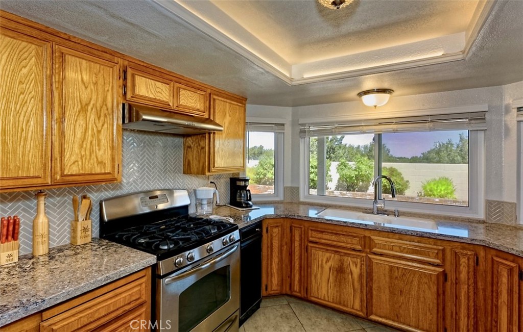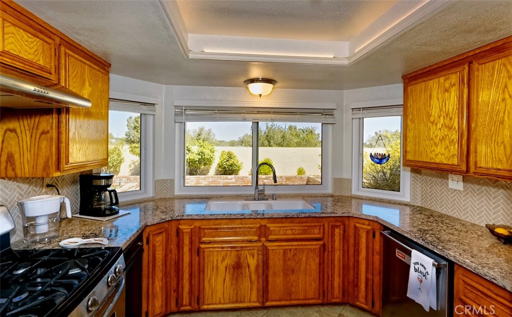 Welcome to your desert oasis situated just minutes from the 15 freeway, restaurants and stores. This spacious and well-maintained 3 bedroom, 2 bathroom home offers 2423 sq. ft. of comfortable living space on a fully fenced in 5 acre lot. Perfect for those who value privacy, space and versatility with mountain and desert views. Inside you will find a spacious open-concept layout ideal for everyday living as well as entertaining with your own beautiful wet bar as well as a built in china cabinet and a built in entertainment center. The kitchen’s open floorplan has excessive amounts of counter and cabinet storage space. A working wood burning stove creates a cozy ambiance in the cooler months. New double pane California Deluxe windows that include a warranty were installed in 2024,a new HVAC unit installed in 2025 as well as a new water heater installed in 2023. Septic was last pumped in 2023. There is also a swamp cooler with three vents strategically placed in the master bedroom, hallway and living room, providing an extra layer of cooling efficiency. The master suite features a large walk-in closet and a bathroom with new laminate flooring. The en-suite bath offers a large jet bathtub, a steam shower option and a bathroom wall heater to keep you warm on chilly mornings. The home also includes an enclosed, carpeted patio with a ceiling fan and double pane windows that directly leads into the master bathroom and could be used as an exercise room, or possibly an extra sleeping area or game room. The indoor laundry room includes a wash sink and a built-in ironing board for convenience. Outside, the property is fully fenced, includes a barn structure, a dog run, six different timed sprinkler systems and several pistachio trees. The outside back concrete patio is perfect for entertaining with a fire pit and rose bushes. Additional features of the home include an attached 4 car garage for ample storage as well as a Nest smart thermostat and security system. This home offers endless possibilities of comfort and privacy.