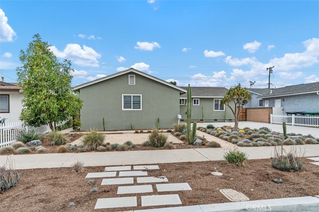 Turn-key remodeled home in the heart of Orange ~ Large rear yard with drought resistant landscaping front & rear / drip system / block walls / generous storage shed / accent lighting ~ New kitchen with stainless appliances which is open to living area and adjacent dining area ~ Remodeled baths with subway tile ~ Wood look laminate flooring throughout with exception of baths ~ Extensive recessed lighting / Newer vinyl windows / Crown moldings / 6” baseboards / Custom fireplace mantel ~ Newer HVAC system and wall insulation ~ Resurfaced exterior stucco and new fascia ~ Closet organizers in bedrooms ~ Cute primary bath with tiled walk-in shower ~ Raised panel doors with black hardware/fixtures ~ Central air ~ Expansive driveway to direct access 2-car garage with epoxy flooring and utility sink ~ Washer/dryer/refrigerator included ~ Minutes to nearby schools-freeways-shopping-restaurants-Old Towne Orange-Chapman College