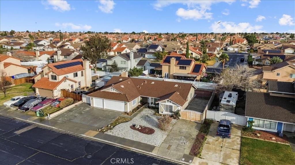 Single story home offering 3 bedrooms and 2 bathrooms with an attached 3-car garage and gated RV parking on an 8,850 square foot lot. 1,584 square feet of living space. Two additional RV friendly driveways provide expanded onsite parking for your RV, boat, trailer, or work vehicles. Single story homes with this level of parking are limited in this area. Vaulted ceilings bring natural light into the main living space. The living room is open and bright. The family and dining area features a fireplace and connects directly to the kitchen for practical daily living. The primary suite includes a walk-in closet and a private bath with dual sinks. Two secondary bedrooms provide flexibility for guests, office use, or long-term needs. The backyard features a large patio and functional outdoor space for gatherings or dining. The front and back yards are finished in rockscape for low maintenance. A hardscaped patio and walkway lead to the front yard, and a dedicated dog run adds function. Central heating and air conditioning provide year-round comfort. Minutes from Victor Valley Mall and positioned between Interstate 15 and Highway 395 for direct commuter access. Schedule your private showing.