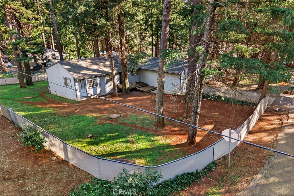 Nestled among the beautiful Magalia Pines, this well-cared-for 2-bedroom, 2-bath home is ready for its new owner! Built in 1991, this property sits on almost a third of an acre and offers comfortable living inside and out. Property Highlights: New composition roof (2020). Fully fenced front and backyard with double gate entry — plenty of room for your RV, boat, or trailer. Welcoming covered porch and front deck — perfect for morning coffee or greeting guests. Updated kitchen with solid-surface counters, ceramic tile backsplash, Whirlpool and stainless-steel appliances, and stylish lighting Vaulted ceilings and dual-pane windows bring in lots of natural light Cozy living room with laminate flooring and a freestanding wood stove on a brick hearth with a beautiful wood mantle. French doors open to a spacious 288 sq. ft. deck for entertaining or relaxing outdoors. Primary bedroom features vaulted ceilings, laminate floors, two closets, a pretty bay window seat, wainscoting accents, and an updated ceiling fan/light. Both bathrooms have 12X23 plank tile flooring, updated vanities, solid-surface counters, modern fixtures, and tub/shower combinations — the guest bath even includes a spa tub! Two-car garage with extra storage and washer & dryer included. Large, peaceful yard surrounded by evergreens with plenty of space to park and play. This home has been lovingly maintained and updated over the years, offering a nice mix of comfort, character, and convenience. Whether you’re a first-time buyer or just looking for a peaceful place to call home, this is a wonderful opportunity to settle into Magalia’s beautiful pine setting!