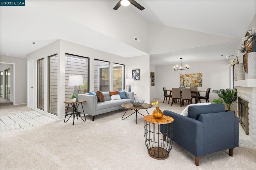 Filled with natural light & designed for easy living, this Heather Farms home offers 1,801 sq. ft. of single-level living plus a versatile 343 sq. ft. finished attic for added flexibility. Set along a peaceful greenbelt, it’s just steps from Heather Farm Park and the community’s resort-style amenities. The inviting living room features vaulted ceilings, a fireplace & sliding doors that open to a private patio overlooking mature trees and open space. A sitting area off the living room offers the perfect spot for reading, work, or quiet conversation. The dining area sits adjacent to the kitchen, which includes a center island, breakfast area & access to the sunny interior atrium. The primary suite features dual closets, a private patio & an ensuite bath with dual sinks & stall shower, offering a relaxing retreat at day’s end, while the secondary bedroom & hall bath offer comfort for family or guests. Upstairs, a spacious attic with skylight & built-in vanity sink adds flexibility, ideal as a 3rd bedroom, media room, or gym. Enjoy direct access to the greenbelt, guest parking & amenities including 3 pools, tennis courts, clubhouse & scenic walking paths. Ideally positioned minutes from top-rated schools, shopping, dining, Diablo Hills Golf Course, John Muir Medical Center & BART.
