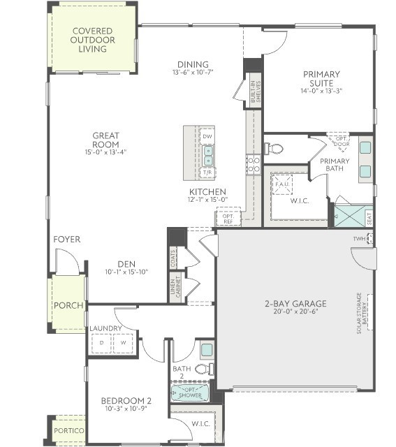 Move-in Ready Home! This beautifully appointed residence features a stucco patio cover, an 8’ entry door, and thoughtfully selected interior upgrades throughout. The primary bath includes a fiberglass shower, while Bath 2 offers a fiberglass tub with a classic subway pattern. The kitchen is equipped with a GE 30” freestanding gas range appliance package with stainless steel microwave hood, Nutmeg shaker cabinets with satin bronze 7” bar pulls, Simply White quartz countertops, an upgraded champagne bronze pull-down faucet, and an upgraded Elkay white farmhouse single-bowl fireclay sink. Additional highlights include pendant light pre-wiring at the island, luxury vinyl plank flooring in common areas, carpeted bedrooms, and vinyl flooring in bathrooms and laundry. The covered patio is prewired for a ceiling fan, and the great room is flat-screen TV ready with conduit. Situated on a 5,887 SF lot.