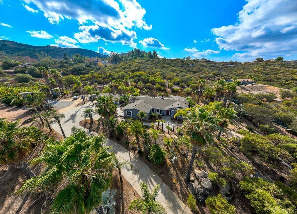 Welcome to Your Private Oasis. Enter through a private gated entrance and follow the long concrete driveway, gracefully lined with swaying palm trees. As you ascend, a breathtaking view unfolds—a pristine, flat, usable 10-acre expanse, ready to fulfill your dreams. Whether you envision equestrian facilities, gardens, or additional structures, this versatile land offers endless possibilities. At the heart of this estate stands a spacious 5-bedroom, 3.5-bath home designed with comfort, functionality, and elegance in mind. Boasting multiple living areas, an open floorplan, and soaring ceilings with skylights, this home is bathed in natural light, creating a warm and inviting atmosphere. The large master suite is a true retreat, complete with a private sitting area, high ceilings, and a luxurious ensuite bathroom. Each of the spacious bedrooms ensures ample room for rest and relaxation. For those who work from home or require a private workspace, an office with a separate entrance provides convenience and flexibility. The home is equipped with a well, septic system, and propane, ensuring self-sufficiency and reliability. Step outside to find your own private paradise—an inviting pool with a tranquil waterfall and a relaxing jacuzzi, offering the perfect place to unwind. Beyond the home, the property continues to impress. A detached 3-car garage and multiple out-buildings provide ample storage, while a dedicated gun range caters to outdoor enthusiasts. Hidden gems await as you explore, from a peaceful cave with a cozy sitting area to serene seating spots along a seasonal stream. An elevated viewpoint offers breathtaking panoramic views of the surrounding valley, making it the perfect spot to soak in nature’s beauty. This is more than just a home—it’s a sanctuary, blending luxury, tranquility, and endless possibilities. Don’t miss your chance to own this extraordinary estate!