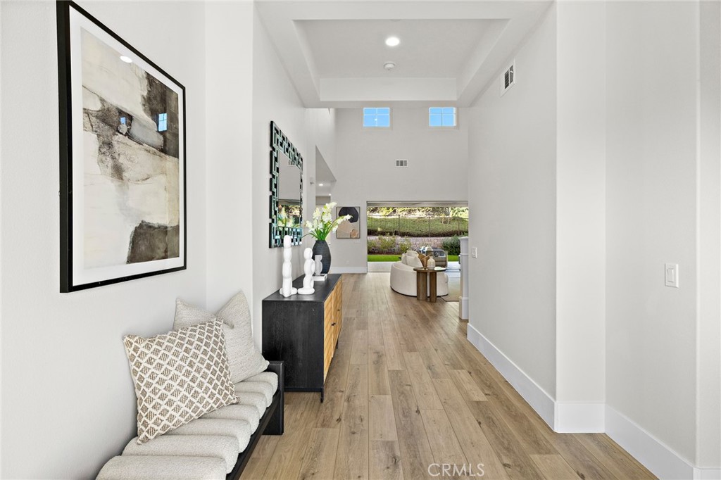 Located in the prestigious gated community of the Oaks at Portola Hills, this beautifully upgraded home offers an exceptional blend of scale, comfort, and modern design. Spanning approximately 3,823 sq ft, the residence showcases dramatic two-story ceilings and an expansive great room that opens effortlessly to the backyard through dual bifold glass doors, creating seamless indoor-outdoor living. The chef’s kitchen is designed for entertaining with an oversized island, premium JennAir appliances, and a fully equipped butler’s pantry. The flexible floor plan includes 4 bedrooms, 4.5 baths, and a spacious loft, with a desirable main-level ensuite ideal for guests or multigenerational living. The luxurious primary suite offers a spa-like bathroom and an oversized walk-in closet. Recent upgrades include designer finishes, updated flooring, and fresh interior paint. The private backyard is finished with low-maintenance landscaping and synthetic turf for easy enjoyment. Fully paid solar enhances efficiency. Residents enjoy access to resort-style amenities including pools, parks, sports fields, scenic trails, and clubhouse facilities, all conveniently located near shopping, dining, and major transportation corridors.