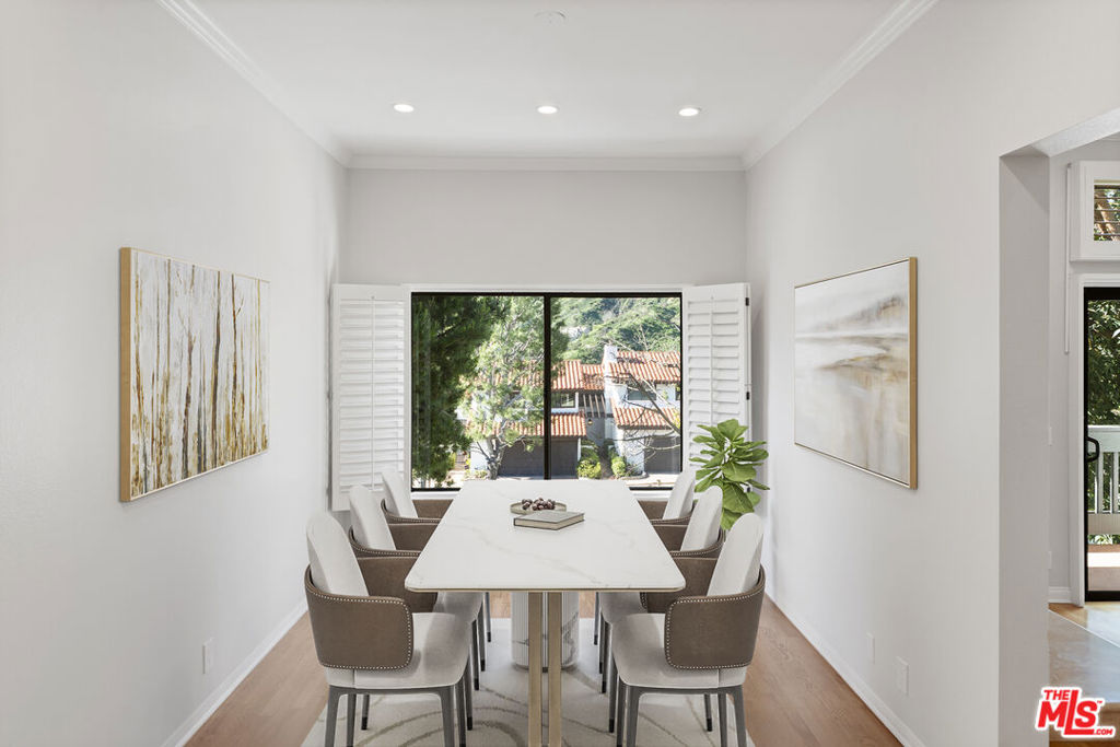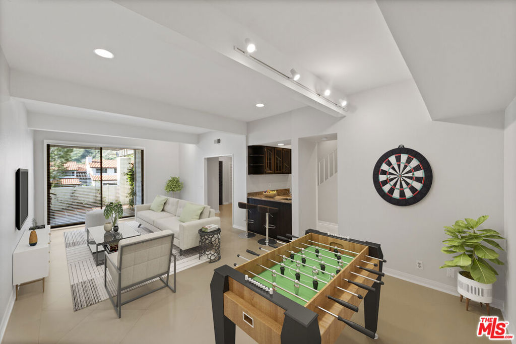 Nestled in the picturesque Palisades Highlands, this coveted 400 floor plan of the Michael Lane Villas offers nearly 2,500 square feet of luxury living across three levels. Meticulously remodeled, it features large format porcelain tiles on the ground level, real oak hardwood floors throughout the second and third levels, an upgraded kitchen with granite countertops, and a primary en-suite bathroom with marble floors, granite countertops, walk-in shower, make up vanity, and separate toilet room. The first floor foyer connects to a versatile grand room perfect for a home office, den, gym, library, or guest quarters with a full private bathroom, wet bar, under-stair storage, and large ground floor patio ideal for entertaining or enjoying the serene natural setting of the Santa Monica Mountains. The airy main level boasts soaring ceilings, a remodeled kitchen with pass through window/bar, formal dining room, powder room, and a spacious living room that opens to a balcony with breathtaking mountain vistas. The two car garage is also on this level, opening directly to the kitchen for easy access to unload groceries and features epoxy floors, storage cabinets, and full size washer and dryer. Upstairs, the grand primary suite serves as a sanctuary with its own fireplace, private balcony, walk-in closet, and marble-clad en-suite. Boasting access to the complex’s resort-style amenities including a renovated pool, fitness center, and sauna this Michael Lane Villa offers the perfect blend of natural beauty and modern luxury.