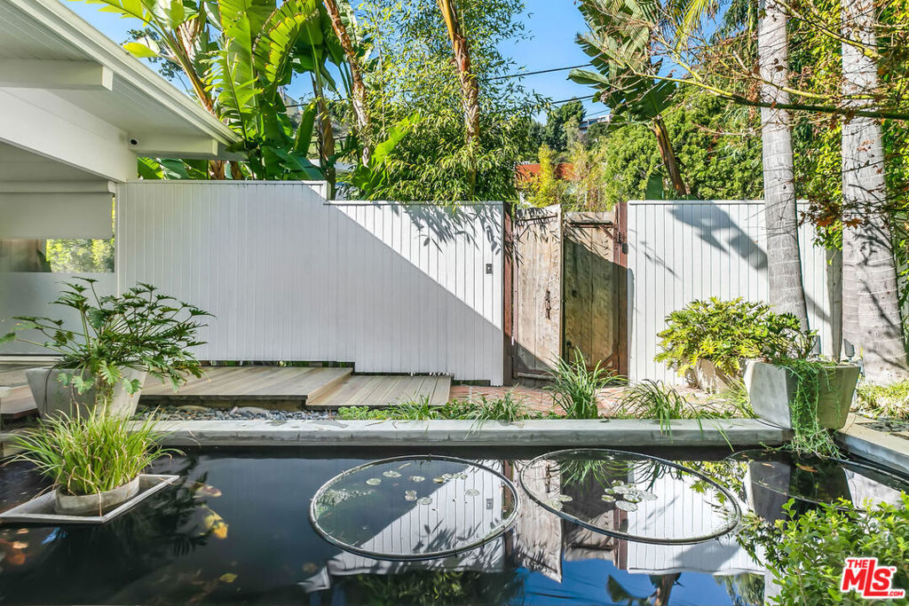 Live as though you are staying at the iconic Chateau Marmont Hotel. Private European-inspired single-story hideaway with a heated pool and city views. Nestled above the famed Chateau Marmont Hotel, minutes from the Sunset Strip with A-list celebrity neighbors on a quiet non-through street at the top of Marmont Avenue. Enter through a hand-carved wooden gate with code access to an enchanting koi pond and sounds of soothing rippling water. Mid-century architecture with walls of glass invite year round sunlight and a romantic luminous warmth. Single-level open floor plan for easy living. Well appointed primary bedroom adjacent a private, heated lap pool with city views (from bed), large walk-in closet, black-out drapes, double vanity, shower, jetted soaking tub and bidet. This special home checks all the boxes: gated and secure, informal and formal living rooms, open kitchen, dining room, petite wine cellar, gas burning fireplace, wet bar, powder, 3 beds en-suite, pool, multiple outdoor sitting areas, outdoor BBQ, city views, 2-car garage with EV charger, Sonos, surround sound, multiple cameras for security and other smart home technology. Simply put, this darling home offers the highest form of California living. List price reflects a 1-year furnished rental. Short term rates are as follows: 20k/mo for 3 months, 18k/mo for 6 months. Utilities are not included in list price. Call for pets. Also available unfurnished for the same rate. Property is tenant occupied until Feb 28, 2026. See agent remarks for showing instructions.