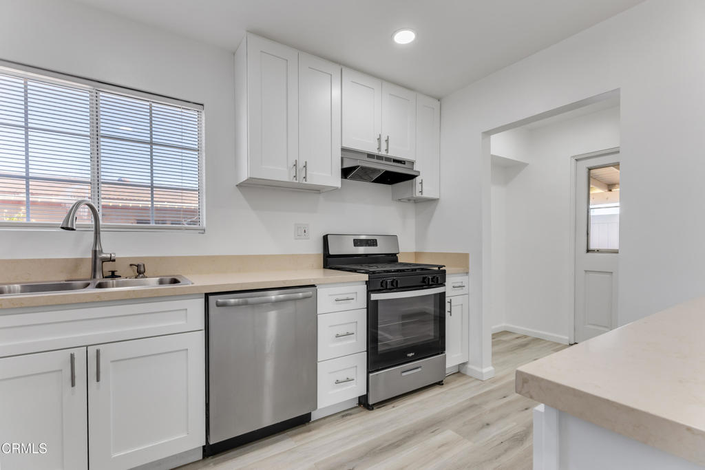 Newly updated 4-bedroom, 2-bath home for lease in the heart of Granada Hills! This spacious home offers a large living room with a fireplace, an open kitchen, and vinyl floors throughout. The kitchen features granite countertops, stainless-steel and black appliances, bar seating, and skylights for abundant natural light. Both bathrooms are updated, and the bedrooms are generously sized with ample closet space. Enjoy a private backyard with a covered patio, perfect for relaxing. Laundry room with hookups included (washer/dryer not provided). Conveniently located near shopping, dining, nightlife, and freeways. Please Note: The property includes a detached ADU in the backyard. There is a private fence separating the two homes. Driveway parking is not available. Street parking only.