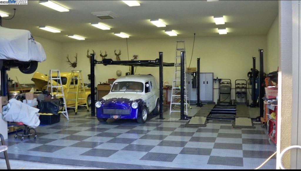 A Hidden Car-Collector’s Jewel awaits! An elegantly expanded 1920’s Craftsman complete Remodel with 40×40 10-Car Shop/Garage, gated paved driveway sideyard with concrete basement. Modern comfort meets preserved vintage charm from top balcony to basement floor! Greeted with a covered brick porch view, enter the Formal Living room with fireplace, hardwood floors that overflow into a versatile bedroom/den with full closet & rich wood French sliding doors. The oversize Kitchen remodel & dining area features large tile flooring, bright windows, large SS slab island, SS appliances, gas range w/ hood ventilation & large granite slab with custom cabinetry and storage. Tip toe up to the Primary Suite with gas fireplace, balcony & luxurious bath or tip toe down to the Family Room level with spacious bedroom & remodeled Bath 2. Wood french doors lead through the covered porch & open up to the 40×40 appx fully loaded open span shop/garage equipped with 20×11′ commercial grade metal roll up door, finished walls with appx 14′ height, 220-V, air compressor w/ airline hookups & more! Equipped with tankless WH & DP windows & doors. The versatile layout maximizes your investment for work-home life to multi-general living & more. Centrally located near Hwy 580, Castro Valley & Hayward amenities.