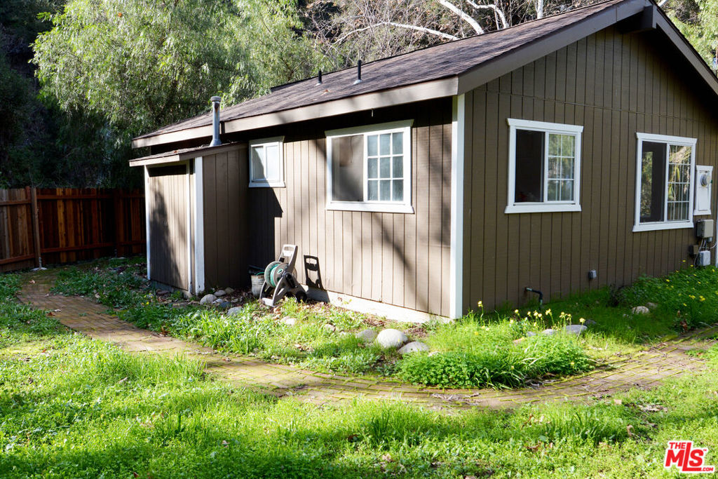 Sweet two-bedroom one bath home, surrounded by a flat yard with garden areas, mature trees surrounding the perimeter plenty of room for picnic tables, or outside patio furniture. The yard is partial fenced by a lovely 6-foot fence and a living fence with Seasonal creek on two sides all set in a peaceful setting. A short distance to The living Caf and the Topanga Community house. Perfect and Peaceful