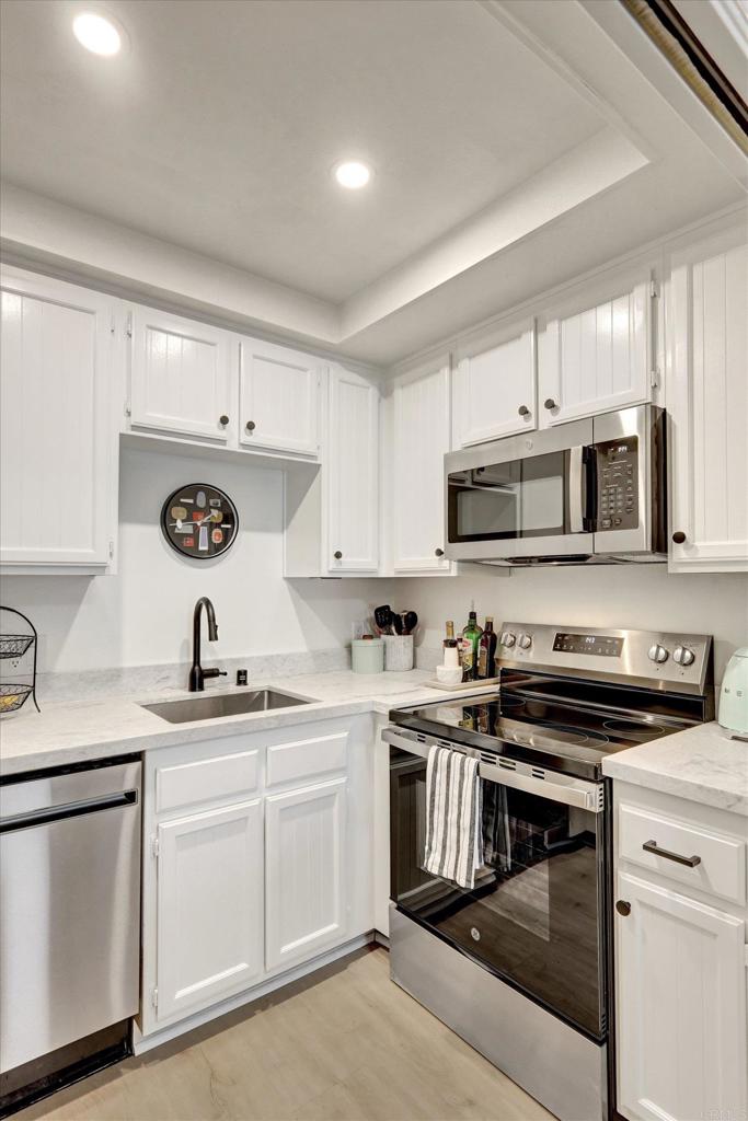 Over $60,000 in recent gorgeous designer upgrades make Unit A308 an exceptional, move-in-ready opportunity in one of North San Diego County’s most distinguished resident-owned, 55+ communities. This 3rd floor condo features soaring vaulted ceilings and stunning sunset views! Recent enhancements include a new HVAC system, luxury vinyl and elegant terrazzo tile flooring throughout, a complete bathroom remodel, elegant quartz countertops in both the kitchen and bathroom, all new fixtures, hardware and appliances, beautiful new stone tile fireplace surround and a spacious walk-in customized by California Closets. The Chateau offers resort-style independent living with an extraordinary array of services included in the HOA fee: one flexible daily meal credit for dining in the elegant restaurant or via room service, bi-weekly housekeeping with linen service, 24/7 emergency on-call system, hotel-style concierge, utilities (natural gas, water, sewer, trash, basic Spectrum cable with DVR, in-unit internet & Wi-Fi), and annual window cleaning. Residents enjoy a large lap pool and spa, state-of-the-art fitness center, library, game rooms, lounges, vibrant activities and clubs. As a Chateau resident, you also gain full access to Lake San Marcos amenities, including the recreation lodge, additional pools, tennis and pickleball courts, championship golf course, 18-hole executive course, watersports, dock, billiards, and more—all just minutes away on foot. Located in the serene, gated Lake San Marcos enclave, you’re steps from restaurants, community church, and recreational offerings. This smoke-free campus welcomes pets with permission (details at chateaulakesanmarcos.com).