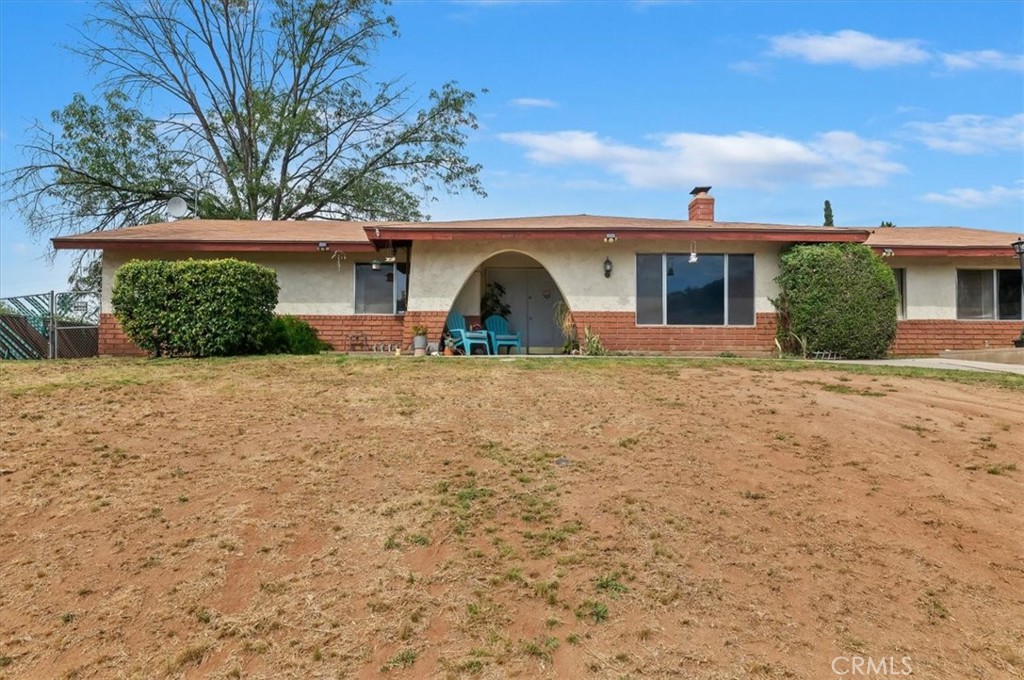 Very nice single story pool home, nestled in the desirable Woodcrest area of Riverside. This spacious home sits on nearly half an acre and offers 2,335 square feet of gracious living space. And, you can have horses! Built in 1973, the property features five bedrooms—including two primary suites—and three bathrooms, providing flexible living options ideal for multi-generational households or guests. A large front yard creates an impressive setback from the street, enhancing privacy and offering plenty of space for future landscaping possibilities. A distinctive arched entryway provides a unique architectural focal point and welcoming transition into the home. The formal living room showcases a stacked-stone fireplace with a classic arched opening, creating a warm space for gatherings. A large picture window fills the room with natural light while offering views of the surrounding neighborhood and hills. The main living area features a contemporary open-concept layout with laminate wood flooring throughout the primary spaces. The family room is bright and inviting with vaulted ceilings, large windows that bring in abundant natural light, and an open connection to the dining and kitchen areas. A sliding glass door leads directly to the backyard, creating seamless indoor-outdoor flow. Perfect for year-round entertaining, the backyard offers multiple outdoor living areas. A spacious patio provides plenty of room for gatherings, complemented by an above-ground jacuzzi and a uniquely shaped pool with paved edging. A beautifully scored concrete patio anchors the space, while a freestanding pergola creates a shaded “outdoor room” ideal for dining or relaxing. A stone fire pit provides the perfect setting for evening gatherings. There are decorative rock borders and low-maintenance landscaping. Beyond the pool area is a large additional yard space ideal for a play area, horses, pets, RV parking or extra vehicles. Mature trees line the perimeter, offering privacy and shade while enhancing the property’s peaceful setting. This wonderful Woodcrest property offers generous space, unique character and lots of possibilities in a highly desirable location.