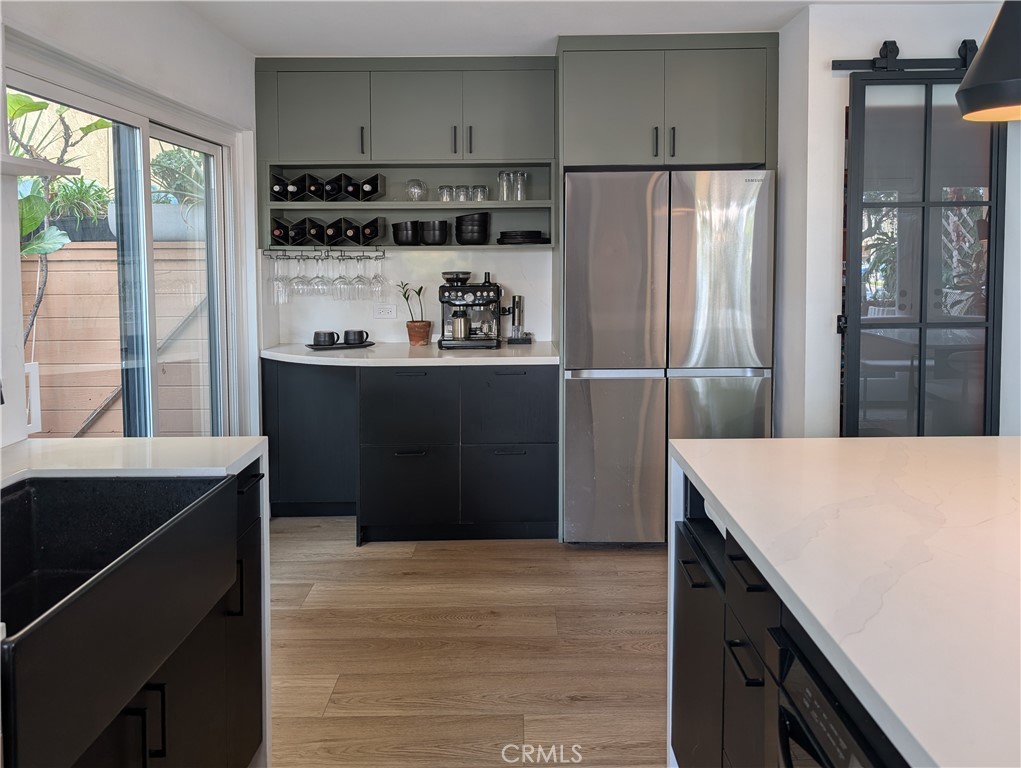 This newly renovated 1,550 SF, 3-bedroom, 3-bathroom townhouse style condo on the West side is conveniently located in Sawtelle, a block away from Stoner Park. The home is a corner unit with lots of light, a wrap around patio, balconies and a sunny roof deck providing an additional 250 SF of outdoor space. Inside, the living room, dining room and the primary bedroom boast double-height ceilings for a spacious feel. The home is fully renovated with all new flooring, bathrooms with custom tile, and a chef’s kitchen with all new appliances. The home also includes: • 2 parking stalls in an enclosed garage with a 220v outlet for electric vehicle charging and storage room • Direct garage access from the unit • Large bedroom closets with a walk-in at the Primary Bedroom • Gas fireplace • Water and Trash included • All major appliances to remain (Fridge, Stove, Washer/Dryer) • Pets allowed