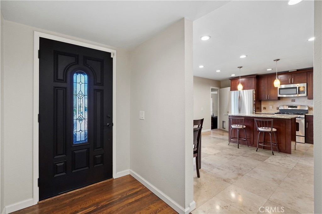 Welcome home to your own private orchard oasis on a tranquil cul-de-sac! This beautifully remodeled property offers 4 bedrooms, 2 bathrooms, 2060 sqft with 11,386 sqft lot, and an exceptional blend of style, comfort, and functionality. As you enter you will discover elegant wood flooring and travertine large tile floors throughout the living areas, complemented by modern recessed lighting and dual pane windows for energy efficiency and a bright atmosphere. The heart of the home is the stunning, upgraded kitchen, perfect for culinary enthusiasts. It features a spacious island, a premium 5-burner gas stove, sleek stainless-steel appliances, pendant lighting and custom honeycomb window treatment. Adjacent living spaces include a cozy living room with stone fireplace, recessed lights, built-in bookshelf & a sliding glass door overlooking the backyard. There is an oversized family room with a warm stone fireplace and its own heating and A/C. The 3rd and 4th bedrooms have been opened to a large primary suite, creating a spacious and private retreat. Both bathrooms have been tastefully updated with beautiful modern finishes offering a serene escape. Step outside to a true private oasis, designed for relaxation and enjoyment. Unwind amidst the fragrant blooming rose garden or pick fresh fruit from the assortment of mature trees, including oranges, dwarf mandarins, lemons, and peaches. Enjoy enhanced privacy and functionality with practical, modern upgrades including recessed lighting and the dim-able light switches through the whole house, newer electrical system which includes 200 amp electrical panel, ceiling fans in the master bedroom and family room, alarm system, copper plumbing, half-court basketball area, two redwood decks in back yard, 8 x 12 vinyl tool/garden shed, 16 x 4 raised vegetable garden, xeriscape front yard and back yard with drip irrigation systems, low voltage outdoor lighting, electric gate entrance which leads to the backyard, perfect for peace of mind and a 2-car garage with a dedicated work area and room for RV parking. Close to Cal State Northridge, Restaurants and Northridge Fashion Center. Located in a sought-after neighborhood, you’re minutes from top-rated schools including the award-winning Granada Charter, Patrick Henry, and Andasol Ave. This captivating home truly has it all-don’t miss the opportunity to make it yours!