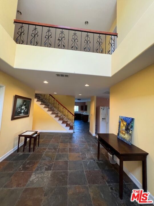 Rare opportunity for an investor or homeowner to own a spacious 4,268 sq.ft. home with endless potential. It features 6 bedrooms, 6 bathrooms, an office, a loft, and an oversized bonus/recreation room. The impressive entry with a two-story ceiling opens to bright living and dining areas designed for both everyday comfort and entertainment. The family room flows into a gourmet kitchen with pantry and views of the expansive backyard. The main level includes a washer/dryer closet, 3 rooms, 2 full baths, a guest bath, and an office. A primary suite on this level features a Jack and Jill bathroom, walk in closet, and direct access to the backyard. The huge flat lot offers exceptional potential for a future pool and multiple ADUs (subject to city approval). A large storage shed is included. Upstairs, the second master suite includes a walk-in closet and a private balcony. 3 additional bedrooms are well-sized and bright, served by 2 full bathrooms. This level also includes a second washer/dryer closet for added convenience. An open loft leads to a large veranda with its own staircase to the side yard, a perfect spot for relaxing. Adjacent to the loft is an extra-large bonus/recreation room that opens to a generous balcony overlooking the backyard, which features a variety of matured fruit trees and vibrant rose gardens. This property offers significant potential, ideal for multi-generational living, investment, or even establishing a board and care facility due to its numerous rooms and expansive layout, buyer to check. Solar is paid off.