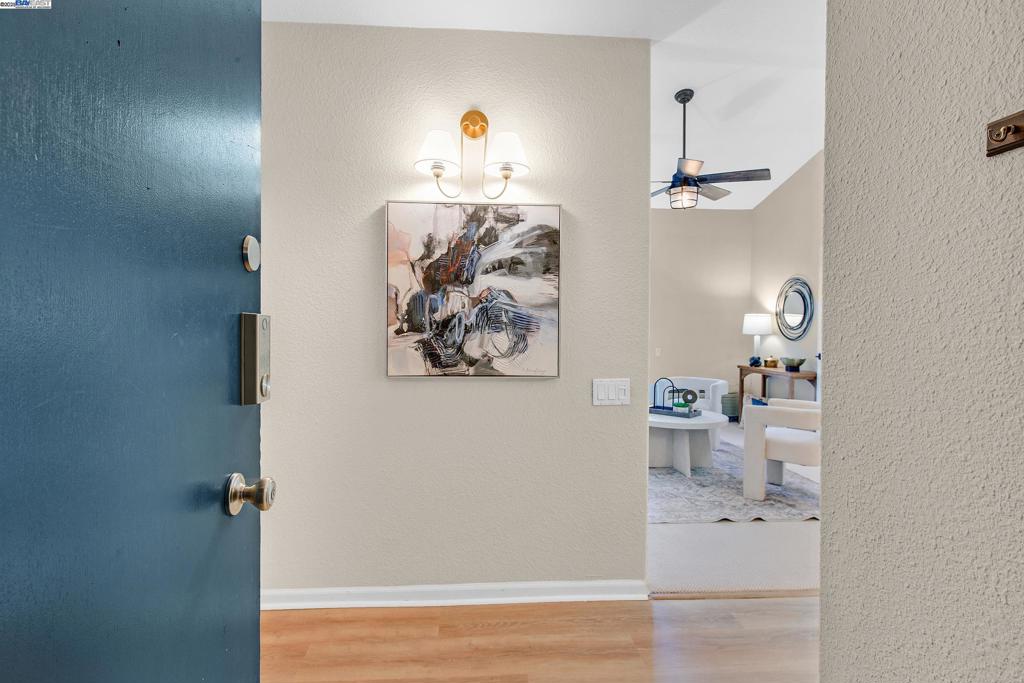 Welcome to this gorgeous, top-floor end unit in the heart of vibrant Walnut Creek! This beautifully updated condo with new flooring throughout offers the perfect blend of style, comfort, and convenience. Soaring vaulted ceilings, a skylight, and dual-pane windows fill the space with natural light, while modern touches like quartz countertops, brand new stainless steel appliances, and a brass dining light fixture with mouth-blown glass elevate the kitchen and living areas. A fingerprint touch lock and Nest Doorbell add an extra layer of modern security and ease. The spacious primary suite features double closets with floor-to-ceiling mirrored doors, and a stylish bathroom with dual vanities and a glass-enclosed shower over tub. Enjoy your private deck with views of Mt. Diablo, and take advantage of ample storage throughout the unit plus extra storage space above your covered parking spot. Additional features include a video intercom system and unbeatable walkability—just minutes to downtown with Broadway Plaza, upscale dining, shopping, movie theaters, and entertainment right outside your door. Enjoy direct access to the Iron Horse Trail, close proximity to BART, and more.