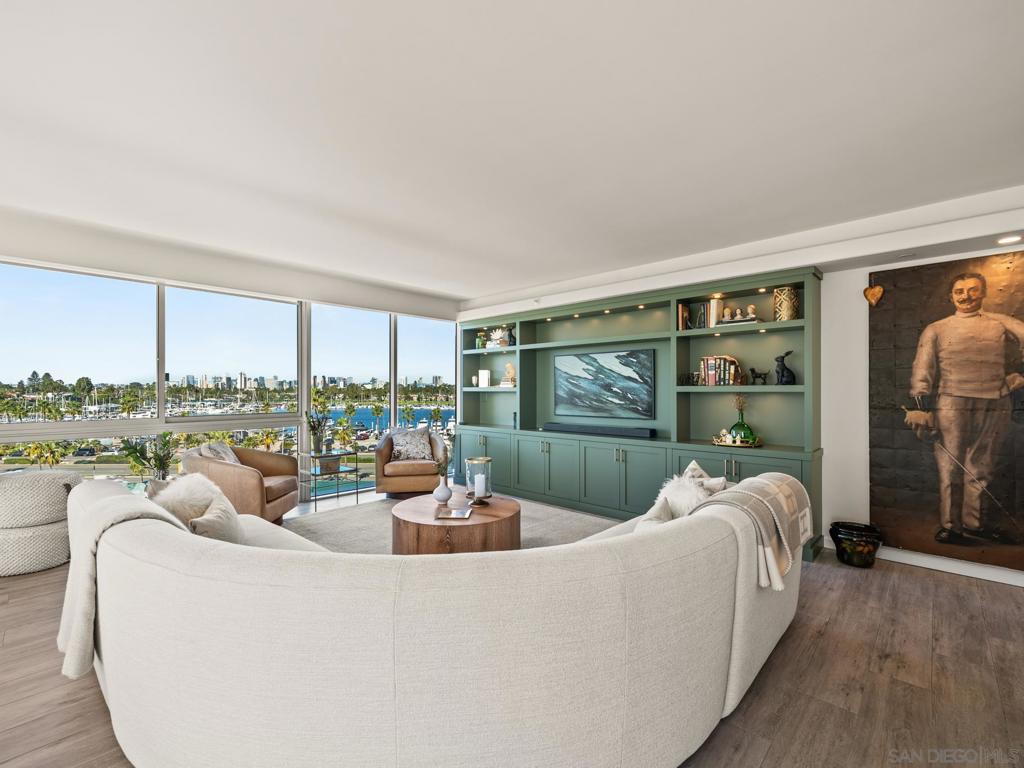 If you are a buyer seeking space, light, turnkey living, and panoramic views of the Pacific Ocean, Hotel del Coronado, the San Diego skyline, the bay, the golf course, and stunning sunsets, this home is for you. This corner residence features a thoughtfully designed layout and is offered fully furnished with high-end designer pieces. The interiors have been curated with exquisite craftsmanship and style. Highlights include hand-crafted woodwork in the living room and bar, custom trim in the hallway and primary suite, handmade tile in the kitchen and bathrooms, and designer wallpaper accents. The chef’s kitchen features all-new GE Café Signature Collection appliances. Additional upgrades include new windows, automatic blinds, new interior doors and casings, upgraded lighting and sconces, and a new washer and dryer. Located in La Princesa, the newest and recently remodeled tower at The Shores, this one-of-a-kind home is complemented by beautifully renovated modern lobbies and hallways, offering a refined balance of classic elegance and coastal charm.