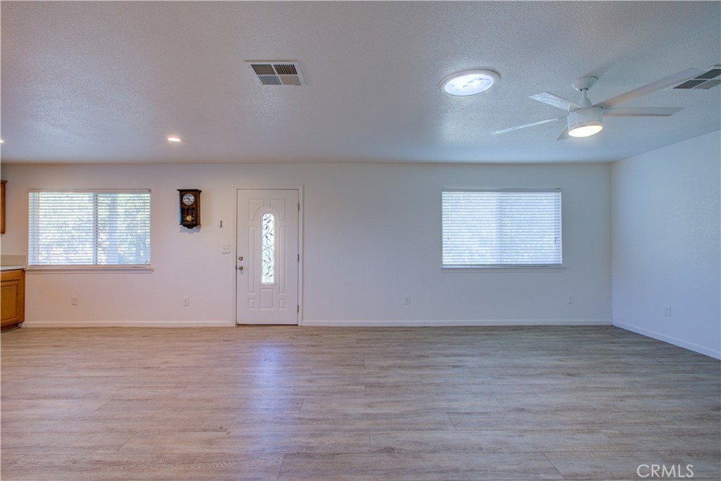 Country living in this newer-built open floor plan 3-bedroom, 2-bath home featuring laminate flooring, mini blinds, ceiling fans, and seven skylights providing abundant natural light. The kitchen offers maple-colored cabinets, stainless steel sink, dishwasher, built-in microwave, gas range, and a cozy dining nook. The family room includes an electric wood stove for added warmth and charm. The primary suite features a granite countertop vanity and large walk-in tile shower. The hall bathroom includes a shower-over-tub and linen closet. Central heating and air. The finished two-car garage offers laundry hookups, a laundry sink, storage space, and electric opener. Property also includes a second dwelling (mobile home) and sits on 19.6 acres. Equipped with an agricultural well, domestic well, and septic systems for both homes. Enjoy comfortable country living with modern amenities and agricultural potential!
