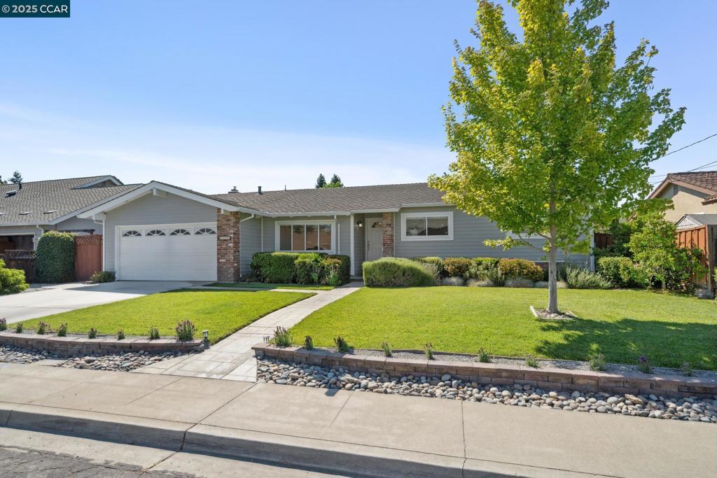 Step into this light, bright beautifully maintained single story 4-bedroom, 2-bathroom home conveniently located on the Walnut Creek border, where natural light and open living spaces create a warm, welcoming atmosphere. The vaulted ceilings in the spacious living room add a dramatic touch, complemented by soft carpet underfoot — perfect for relaxing evenings or entertaining guests. Hardwood floors flow through the dining room, hallway, and all bedrooms, adding timeless character and continuity throughout. The open-concept kitchen connects seamlessly to the family room, where a cozy gas fireplace adds to the charm. Outside, enjoy the expansive backyard oasis – a true highlight of this property! Unwind on the wood deck, tend to the vibrant vegetable garden, or play in the grass. Fruit trees dot the landscape, producing seasonal delights such as tangerines, apricots, apples, plums, citrus, guava, strawberry guava, grapes, cherry, and peaches. All landscaping is sustainably supported by a private well and automatic irrigation, keeping things green and cost-effective. Modern upgrades include owned solar power, a Tesla backup battery, and a newer Solaris Cool Roof that was installed in 2024, offering peace of mind and energy efficiency for years to come.