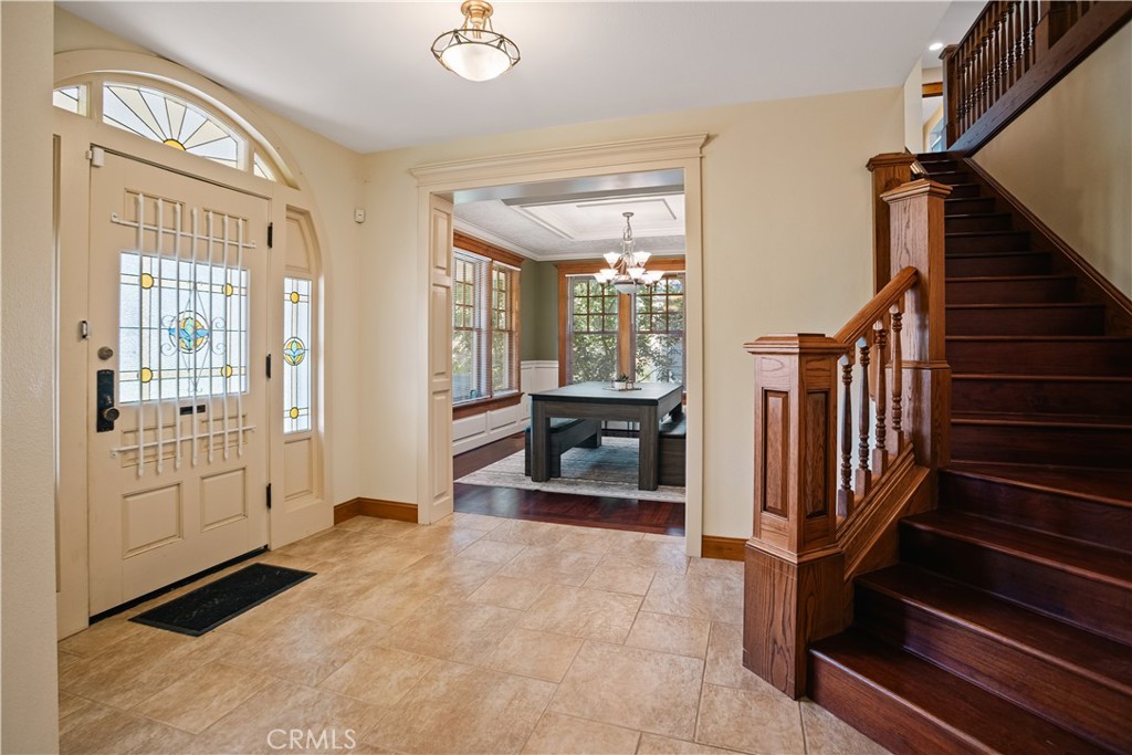 Tucked behind a private gated entrance on over an acre, this custom built Paul Witt estate unfolds as a true retreat where craftsmanship, scale, and design come together effortlessly. As you arrive, the sense of privacy is immediate, with mature landscaping and fruit trees surrounding the property, while expansive RV parking and a four-car garage offer both convenience and capability. When you step inside the home truly begins to reveal itself. Soaring vaulted ceilings with exposed wood beams draw your eyes upward, while natural light pours through, creating a warm and inviting atmosphere. The main living space is anchored by a dramatic floor-to-ceiling fireplace, giving the room both presence and comfort—an ideal setting for quiet evenings or hosting on a grand scale. The kitchen was designed for both everyday living and elevated entertaining. At its center, an oversized island with bar seating invites gathering, while dual sinks—including a prep sink—allow for seamless functionality. Outfitted with two dishwashers, double ovens, a gas-burning stove, a built-in ice maker, and a generously sized walk-in pantry, the space caters effortlessly to both intimate dinners and large-scale hosting. Just beyond, the formal dining room offers a refined setting for more curated occasions. Moving through the home, you’ll find five well-appointed bedrooms and five bathrooms, each designed to provide comfort and privacy. A dedicated office creates the perfect environment for focused work, while a built-in central vacuum system adds everyday convenience. The laundry room—complete with ample counter space, storage, and hanging racks—further enhances functionality without sacrificing style. The primary suite serves as its own private retreat, complete with a secluded patio that opens to the backyard—offering a quiet place to start or end the day. Outdoors, the experience continues. A resort-style pool with an integrated spa and three cascading waterfalls becomes the focal point, complemented by a 600-square-foot built-in gazebo ideal for entertaining or relaxing in the shade. A dedicated sauna and wellness room elevate the home further, creating a space designed not just for living, but for restoration. Completing the property are 96 owned solar panels, offering long-term efficiency without compromising luxury. Every element has been carefully considered—from its expansive layout to its private setting—creating an estate that feels both elevated and deeply livable.