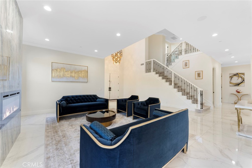 Welcome to this newly remodeled luxury estate, tucked behind a secondary private gate in the prestigious Oak View enclave of the world-renowned equestrian community of Coto de Caza. This 5-bedroom, 4.5-bathroom residence has been reimagined into a refined sanctuary, offering breathtaking mountain views and exceptional privacy. Step into the grand foyer, with soaring ceilings that lead to a modern living room highlighted by a marble-accented fireplace, alongside a spacious home office. The formal dining room, accented with white embossed wainscoting, provides an elegant setting for entertaining. The chef’s kitchen is the true heart of the home, featuring an oversized waterfall island with a matching marble backsplash, dual refrigerators, double ovens, a 6-burner range, and a designer hood—perfect for the culinary enthusiast. The main level also offers a guest suite with a private bath, a well-equipped laundry room, and a rare four-car garage. Upstairs, the primary suite is a private retreat featuring a cozy fireplace, custom finishes, and a lavishly upgraded bathroom. The bathroom boasts a glass-enclosed shower, a freestanding soaking tub, dual vanities with smart mirrors, and a custom walk-in closet. Three additional bedrooms, a media room, and a loft provide flexible living space. The entertainer’s backyard is a showpiece, complete with a custom pool and spa, built-in BBQ and bar, outdoor fireplace, and multiple seating areas—all designed to showcase the sweeping mountain vistas. This exceptional estate combines luxury finishes, thoughtful upgrades, and unmatched privacy in one of Coto de Caza’s most sought-after neighborhoods. Don’t miss this rare opportunity.