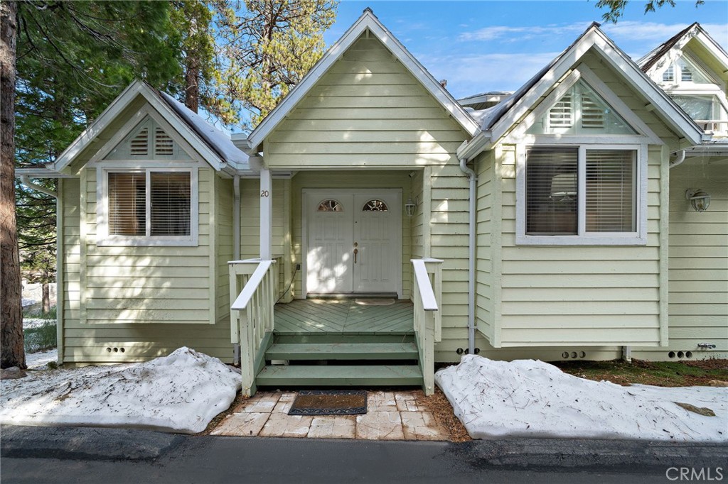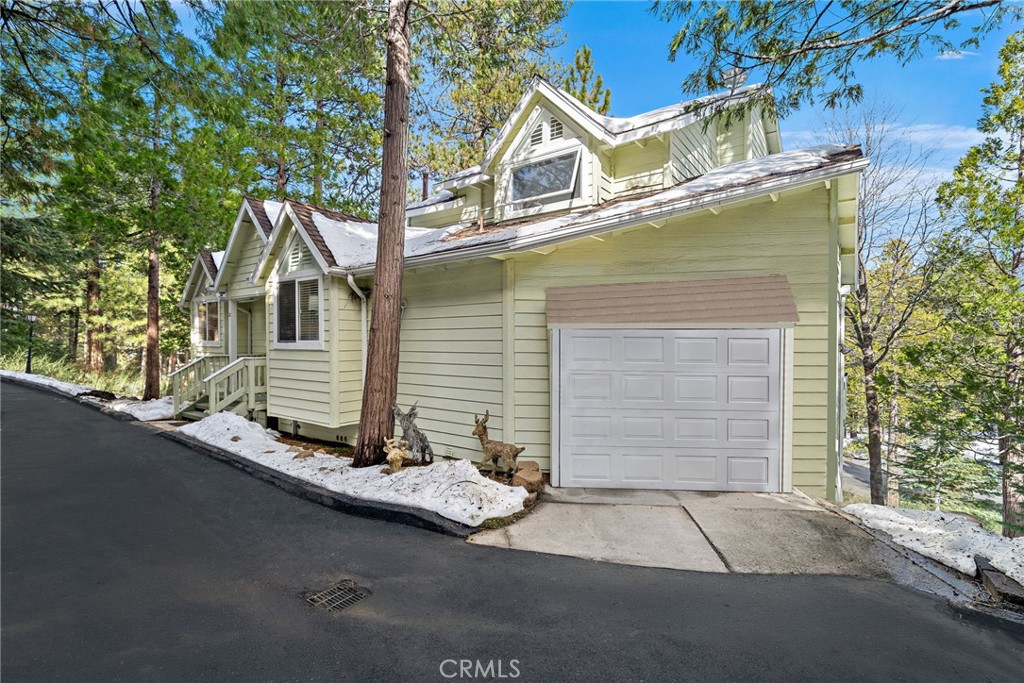 Nestled beside the prestigious Lake Arrowhead Country Club, this stunning mountain chalet offers the perfect blend of privacy, luxury, and convenience. Tucked among the pines and set behind a gated entrance in the exclusive Country Club Villas, the home enjoys a serene setting overlooking the golf course clubhouse, while still feeling like your own secluded retreat. With direct trail access to the country club and golf course — and a golf cart garage with cart included — effortless mountain living is built right in. Custom built in 2000, the residence showcases breathtaking architecture with expansive bay windows that fills the home with natural light and forest views. The inviting living room is anchored by a striking raised hearth stone fireplace that enhances its timeless mountain character. Large entertaining deck extends the living space outdoors, creating the perfect setting for gatherings or peaceful mornings overlooking the mountain atmosphere. Upstairs, the primary suite serves as a private sanctuary featuring a walk-in bathroom with a soaking tub and direct access to a private patio. From this tranquil retreat, enjoy elevated views over the dramatic great room windows and treetops below. Thoughtful upgrades throughout the home include a gas-operated generator, tankless water heater, and new easy-clean main-level windows and blinds, along with a spacious workshop and build-up area providing valuable storage and workspace. Completing the lifestyle offering are full lake rights to Lake Arrowhead, beautifully maintained grounds and community snow plowing, ample parking, and the privacy of a gated community — making this exceptional chalet ideal as a refined mountain getaway, retirement home, or full-time residence.
