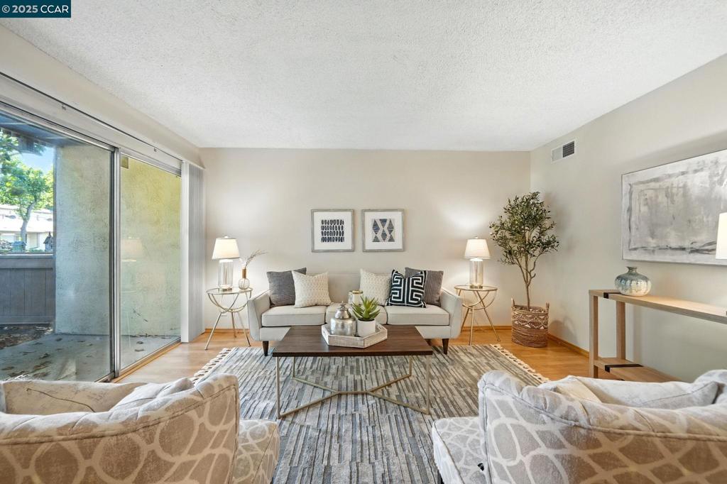 Updated townhome in Sunset Park in a prime Walnut Creek location near BART, freeway & Countrywood Shopping Center! This light and bright home features an updated kitchen boasting granite slab countertops, tile flooring, ample cabinets & casual dining area which opens to a private rear patio, perfect for relaxing or entertaining. Living room offers laminate flooring & slider to front yard. Upstairs you’ll find spacious bedrooms, including a primary suite with its own balcony. The upstairs bath includes an updated shower over tub. In-unit laundry. One assigned covered carport. Great complex amenities including club house, greenbelts, tennis courts and pool!