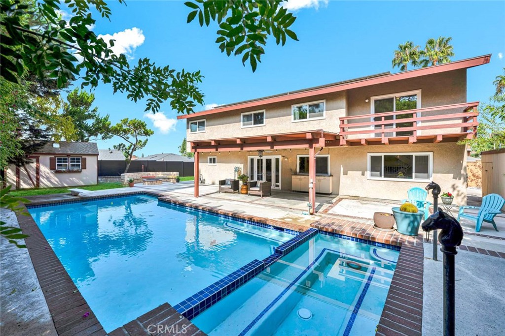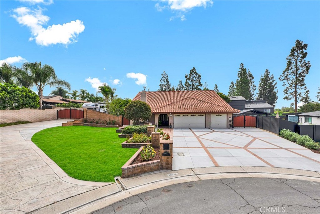 A truly rare find in YL,this exquisite nearly 3,000 sq.ft. residence sits on an expansive 15,000 sq.ft. lot at the very end of a quiet,private cul-de-sac. The curb appeal is unmatched.A triple-wide,freshly poured concrete driveway w/brick inlays leads to a 3-car garage boasting built-in storage across the entire width of the garage.Step thru double doors & into grand living room w/soaring cathedral ceilings,wall-to-wall brick fireplace.Tons of Natural light pours thru large windows & sliding glass doors.Hardwood floors flow from hallway into formal dining room,accented by open beam ceilings,pool views & built-in speaker system.The gourmet kitchen was fully remodeled w/custom hardwood cabinetry w/pullouts & Lazy Susan,black granite countertops,designer tile backsplash,S/S GE oven,KitchenAid 5-burner cooktop & microwave,Bosch dishwasher & S/S sink w/ upgraded fixtures,opening to a cozy breakfast nook & a large family room & French doors w/side vents that invite in Yorba Linda’s gentle evening breezes.Downstairs also includes a spacious bedroom w/ its own private entry thru a sliding glass door—perfect for guests or multi-generational living.Adjacent is 3/4 bath & laundry room featuring sink,hardwood cabinetry & utility storage.Upstairs,a loft & private balcony provides the perfect retreat or home office.The primary suite is a Showpiece:vaulted ceilings,lighted ceiling fan & a fully remodeled master bath w/ dual sinks,upgraded fixtures & walk-in shower w/ tile insets & built-in bench.The dual-entry massive master closet has custom organizers & mirrored wardrobes for exceptional storage.Energy efficiency abounds w/ a paid-off solar system,Lennox high-efficiency HVAC & whole house fan.The backyard is a private entertainer’s dream:A sparkling pool/spa anchor the space,enhanced by new tile,diving board & multiple seating areas surrounded by lush privacy landscaping.Pool features new equipment—heater,controller & internet-enabled remote control system.The 8-person spa,a fire ring w/ semicircle seating for 10 & covered patio,built-in speakers & pass-thru window make this backyard the perfect venue for gatherings.Solar heating for pool & 2 large sheds—one 15’x9’ could be for storage or dollhouse & another 10’x6’ for tools or toys.Over $350,000 invested in improvements,including:Roof replacements,Vinyl windows/sliders & insulation.Nestled among other estate-caliber homes,this residence offers unmatched privacy,quality craftsmanship,feeding best of PLA/Linda schools.
