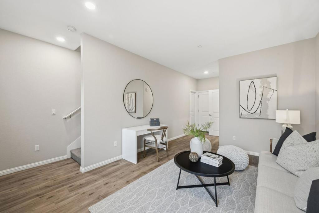 Welcome to this modern townhome in the heart of Berryessa, offering a thoughtfully designed three-level. A charming front yard leads into a spacious first-floor living room, complemented by a storage closet and a full bathroom with quartz countertops, ideal for guests or flexible use. The main living level features an open-concept design anchored by a contemporary kitchen with Winter White cabinetry, quartz countertops, a center island with sink, stainless steel appliances, and generous storage. The kitchen flows seamlessly into the dining area and family room, creating an ideal space for everyday living and entertaining. This level also includes a bedroom and a full bathroom. Upstairs, two en-suite bedrooms provide comfort and privacy. The light-filled primary suite features a walk-in closet and a spa-inspired bathroom with dual vanities, quartz countertops, and a stall shower. The secondary suite offers large windows and a full bathroom. An in-unit washer and dryer are located on this level. Additional highlights include an attached two-car garage with extra storage. Ideally located near shopping, dining, Berryessa BART, major tech campuses, and with easy access to Hwy 101 and 680. Conveniently tucked away within the community for added privacy, and offers a very low HOA!