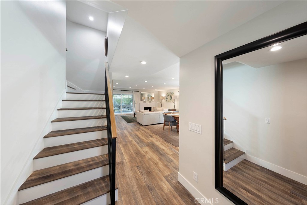 Beautifully remodeled 5-bedroom Glen Mar Shores residence showcasing over $50,000 in thoughtful upgrades and a private backyard retreat. This exceptional home features a reimagined kitchen, an open-concept family and dining area, renovated bathrooms, two main-level bedrooms with ceiling fans and custom closet doors, and convenient indoor laundry. The two-car garage is equipped with overhead storage, an EV charger, and direct access to the wraparound backyard patio. The backyard offers a serene, private setting with low-maintenance turf, a stunning mature magnolia tree, and non-invasive clumping bamboo that creates a natural, secluded ambiance. Upstairs, the primary suite—uniquely designed in the remodel—includes a walk-in closet and an ensuite bathroom, accompanied by two additional bedrooms and a hall bath. The kitchen is both stylish and functional, featuring quartz countertops, a spacious center island, abundant storage, new high-end faucet, a large apron-front sink, and generous prep space ideal for cooking and everyday living. Additional enhancements include new electrical subpanels, fresh paint, closet shelving, luxury vinyl plank flooring upstairs to match the main level, a drip irrigation system with new sprinkler valves, water softener, Hunter Douglas blinds and custom drapery, updated chandelier and custom fixtures, and more. Ideally located near the bike path, the highly-regarded Pegasus School, Lamb Park, local beaches, and convenient freeway access.