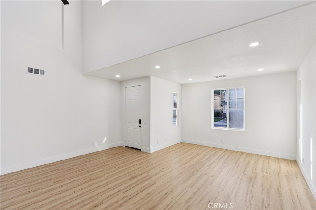 Turn-key renovated two-story home located in the desirable community of Newhall. This spacious 4-bedroom, 3-bathroom home offers a functional floor plan with one bedroom and full bathroom conveniently located downstairs, perfect for guests or multi-generational living. Upon entry, you’re welcomed by a bright and open family room featuring vaulted ceilings that create an airy and inviting space. The family room flows seamlessly into the kitchen and living area, making it ideal for everyday living and entertaining. The kitchen features a center island and easy access to the main living spaces. Recent upgrades throughout the home include new laminate flooring, new carpet, and a brand new HVAC system for year-round comfort. Upstairs, the primary suite offers a beautifully renovated bathroom complete with a new soaking tub, separate standing shower with updated fixtures, and a modern vanity. The backyard is designed for relaxation and entertaining, featuring a large covered patio with a fireplace and a low-maintenance yard. Located in the heart of Santa Clarita, this move-in ready home combines modern updates with comfortable living and is ready for its next owner to enjoy.