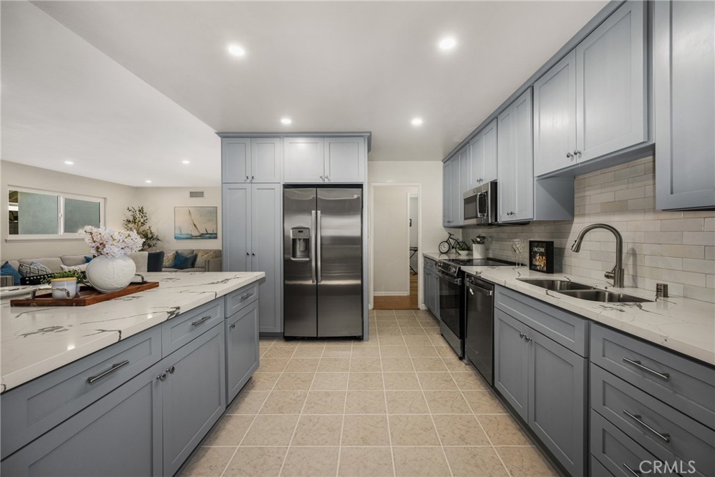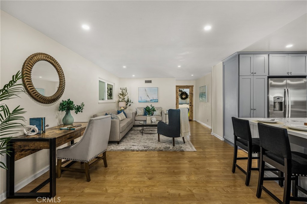 This beautifully refreshed single-level home is situated on a quiet cul-de-sac in the highly desirable Seahaven neighborhood of South Huntington Beach, offering the perfect blend of coastal lifestyle, comfort, and modern design. With no interior steps, this thoughtfully designed layout provides effortless single-level living. Approximately 1.5 miles from world-class beaches, the bright open floor plan enhanced by a high-ceiling addition creates an airy, inviting atmosphere ideal for everyday living and entertaining. The heart of the home is the fully renovated designer kitchen, featuring quartz countertops, custom-made cabinetry, brand-new stainless-steel appliances, recessed (halo) lighting, and a spacious breakfast bar / peninsula perfect for casual dining and gathering. Wide-plank luxury vinyl flooring, abundant recessed lighting throughout the living and dining areas, and dual-pane insulated vinyl sliding windows fill the home with natural light and contemporary elegance. A versatile bonus room with a cozy fireplace and extensive built-in cabinetry offers exceptional flexibility — ideal for a family lounge, home office, media room, or creative space — while providing seamless access to the backyard for indoor-outdoor living. Thoughtful upgrades include ceiling fans with integrated lighting in all bedrooms, front and backyard irrigation systems, rain gutters, along with roof and HVAC system maintenance, delivering comfort, efficiency, and peace of mind. The private backyard is perfect for morning coffee, weekend barbecues, and relaxed evenings under the coastal sky. Ideally located near top-rated schools, scenic parks, shopping, dining, and coastal trails, this move-in-ready home captures the very best of Huntington Beach living.
