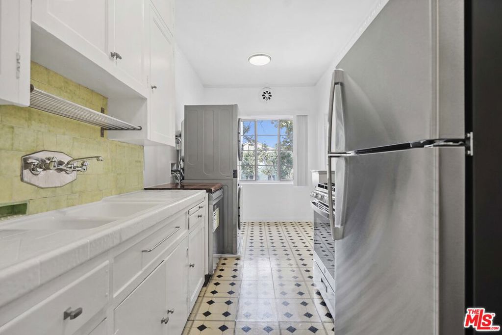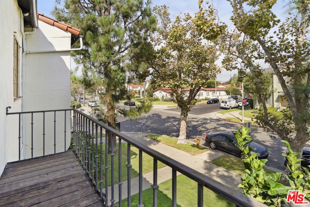 Available starting April 1, 2026. Charming 1 bed/1 bath corner unit for lease! Situated on the upper level of a secure building, this beautifully updated 1930s Spanish-style apartment seamlessly blends classic charm with modern amenities in a prime location. Unit C is thoughtfully upgraded with gorgeous refinished hardwood floors, an A/C unit in the bedroom, and fresh paint throughout, while also retaining its original charm with elegant crown molding, colorful tiling, and vintage touches. The sun-drenched living room boasts a decorative fireplace and a balcony offering peaceful tree top views. The kitchen is equipped with stainless steel appliances including a dishwasher and ample cabinet and counter space. There is a generously-sized bedroom plus a full bathroom with contemporary tile floors, a soaking tub, and a shower. Additional features include in-unit laundry with a washer/dryer and a detached one-car garage, providing secure parking and additional storage. Nestled on a peaceful corner lot, this unit is just moments away from local grocery stores, Pan Pacific Park, and endless shops, restaurants, and entertainment on La Brea, Melrose, and at The Grove. This won’t last long! Available starting April 1, 2026. Currently tenant-occupied through March 8, 2026. No showings until tenant moves out. Dogs are not allowed. Cats are allowed. Some photos are virtually staged.